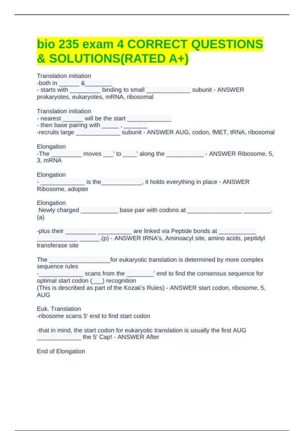 -The _________ moves ___' to ____' along the ___________ - ANSWER Ribosome, 5,