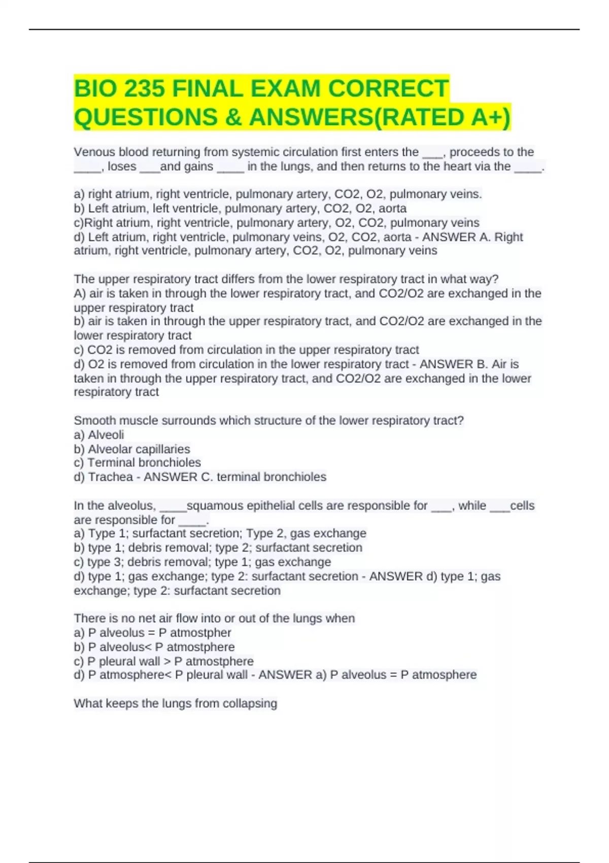 d) O2 is removed from circulation in the lower respiratory tract - ANSWER B. Air is