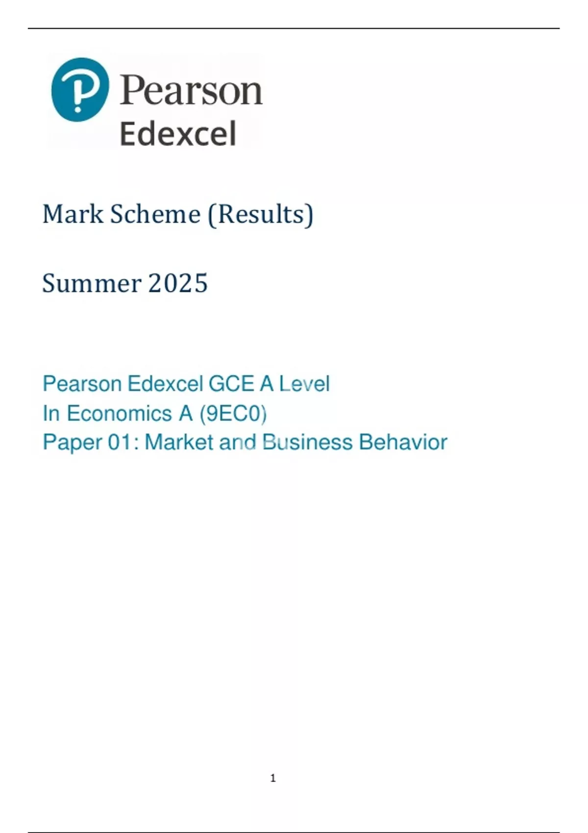 Pearson Edexcel GCE A Level In Economics A (9EC0) Paper 01: Market and Business Behavior|| Marking Scheme