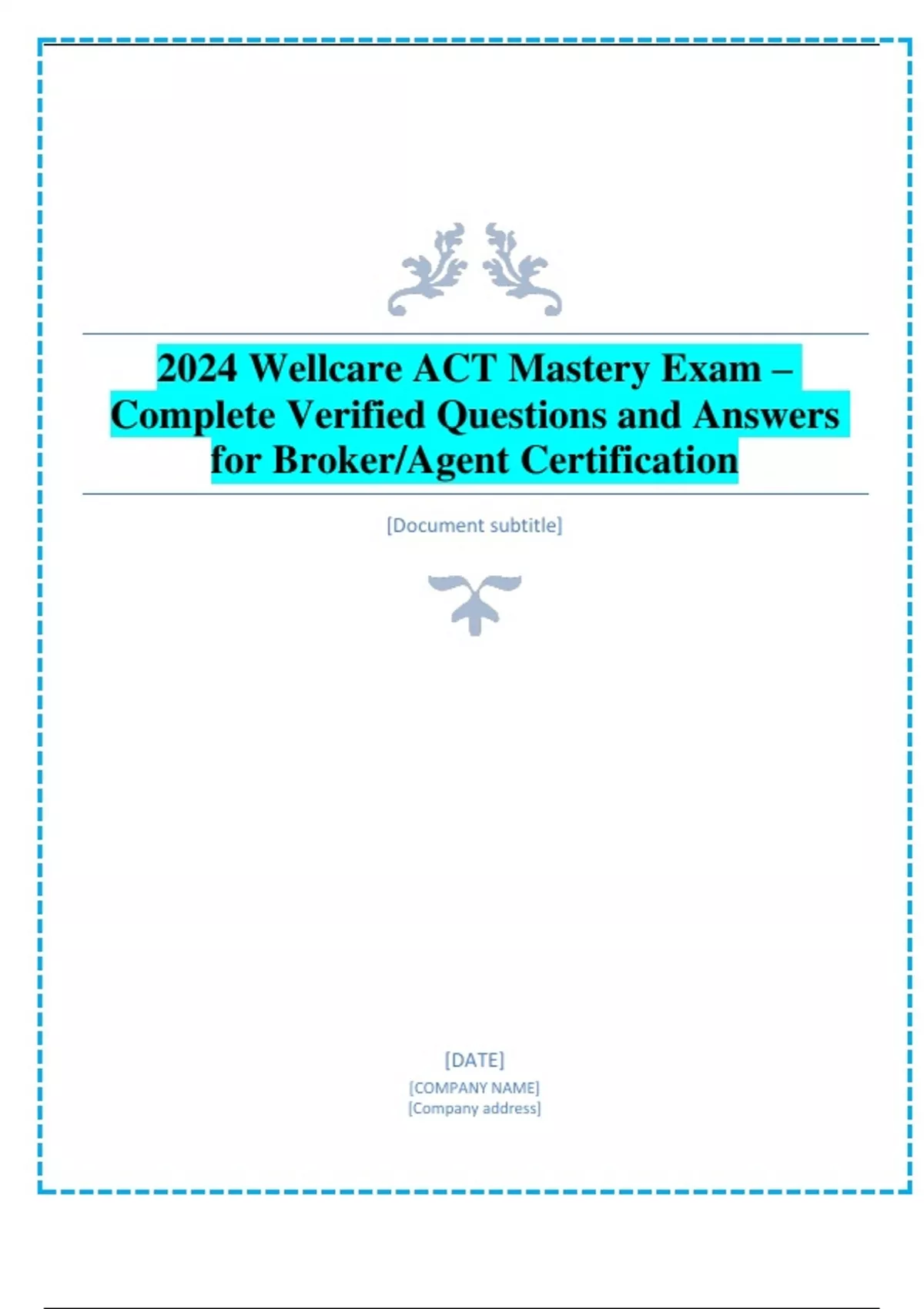 2024 Wellcare ACT Mastery Exam – Complete Verified Questions and Answers for Broker/Agent Certification