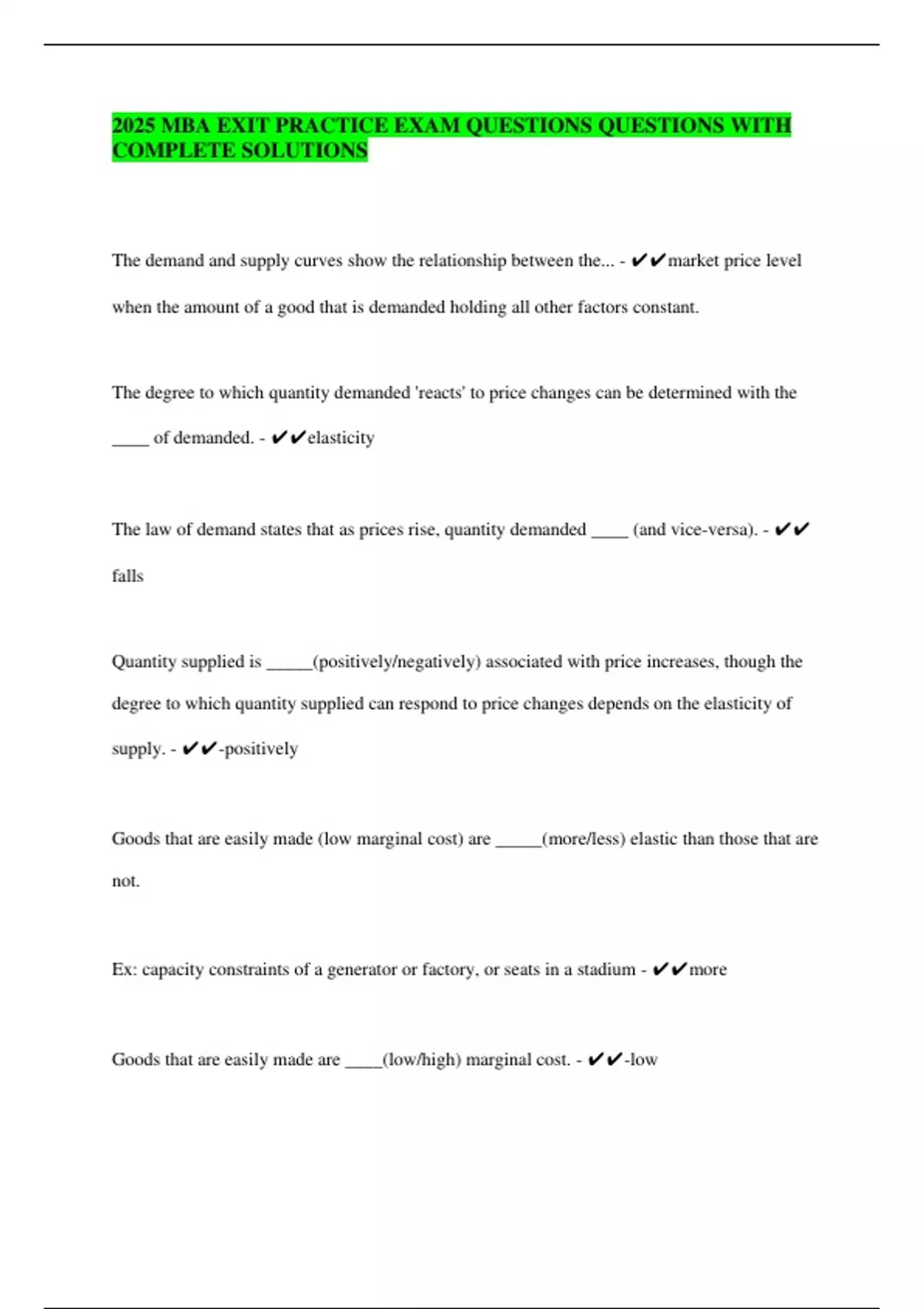 2025 MBA EXIT PRACTICE EXAM QUESTIONS QUESTIONS WITH