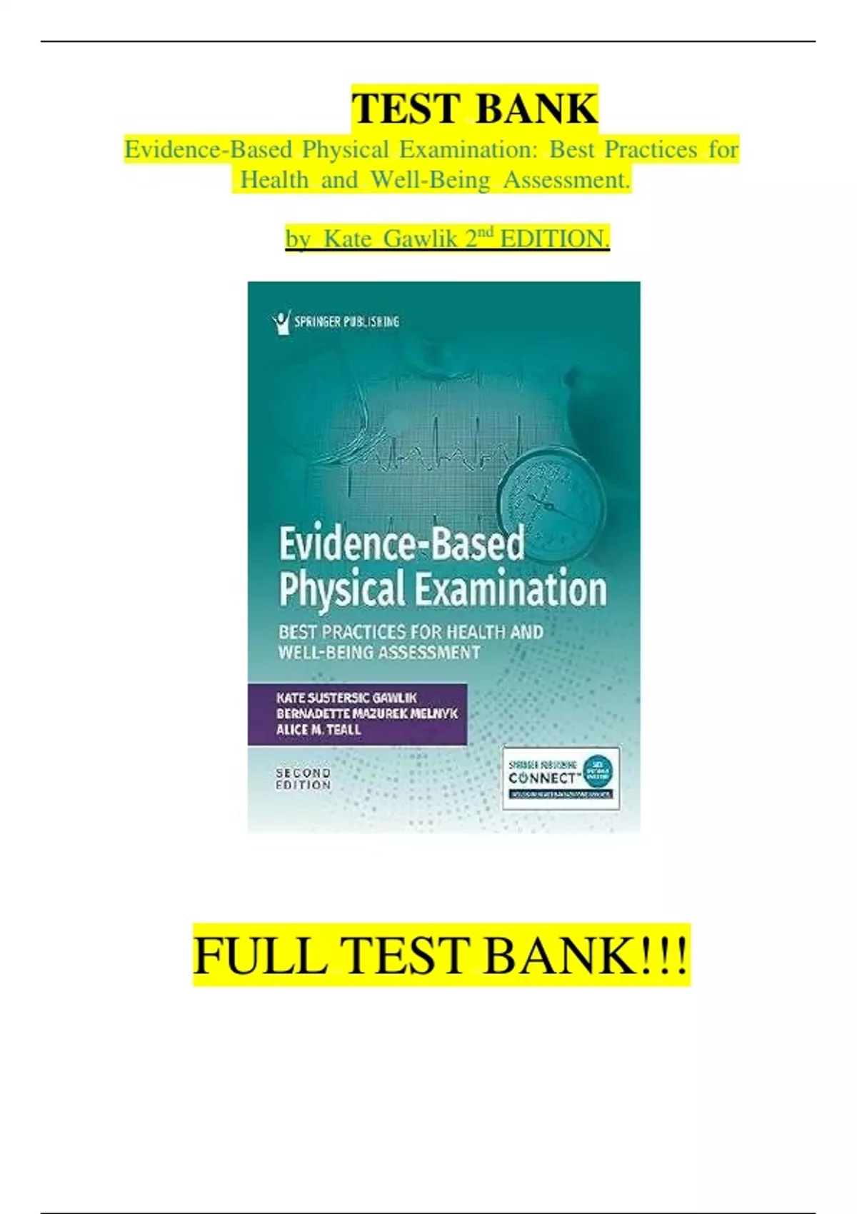 Test Bank For Evidence-Based Physical Examination: Best Practices for Health and Well-Being Assessment 2nd Edition by Kate Gawlik||ISBN NO:10,0826155316||ISBN NO:13,978-0826155313||All Chapters Covered Complete Guide A+||NEWEST VERSION.