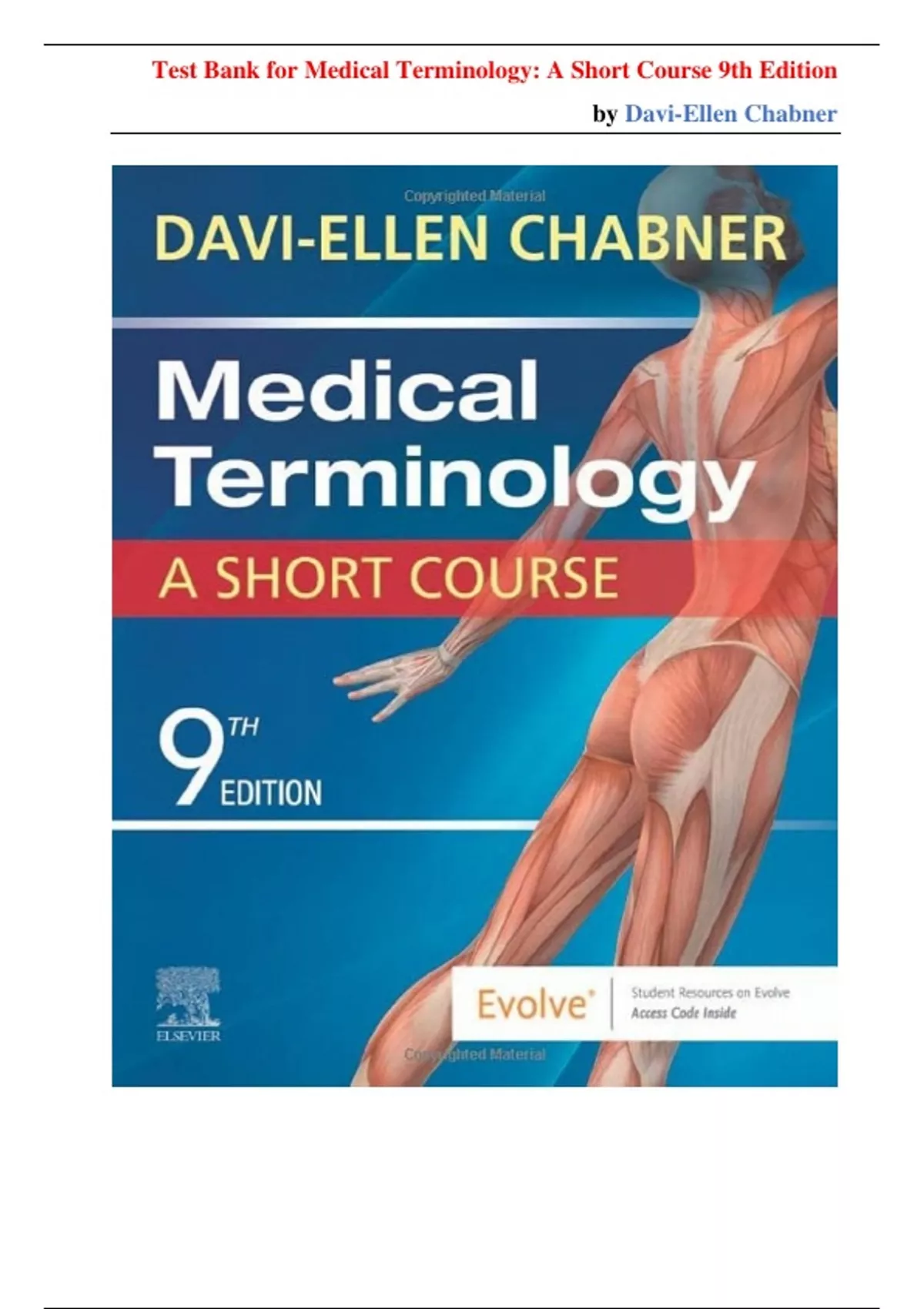 Test Bank for Medical Terminology: A Short Course, 9th Edition by Davi-Ellen Chabner. Includes hundreds of multiple-choice and matching questions with 100% verified answers and rationales. Covers word parts, body systems, diseases, and medical procedures. Perfect for nursing, allied health, and medical students. Instantly downloadable and aligned with foundational healthcare terminology standards.