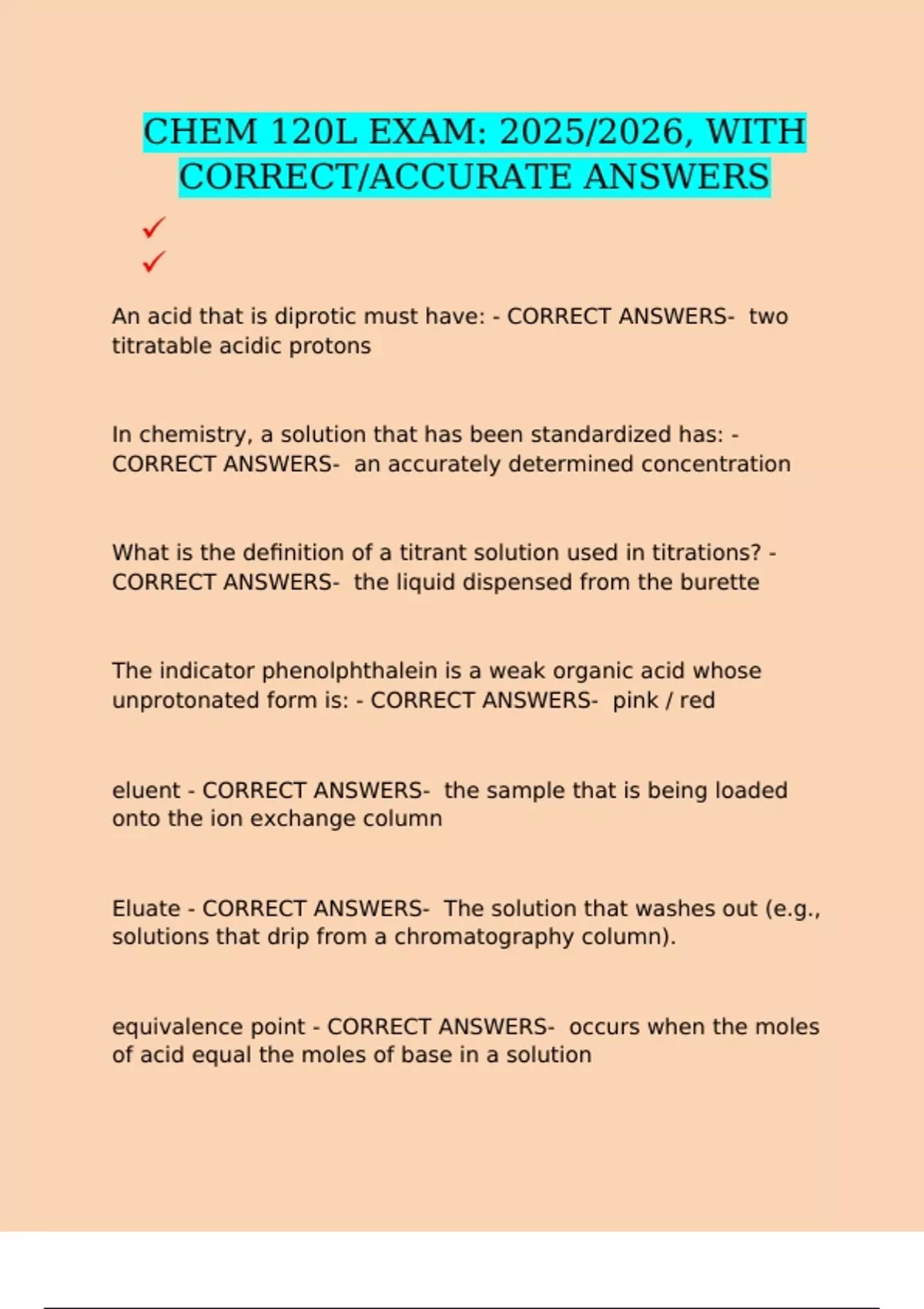 CHEM 120L EXAM: 2025/2026, WITH