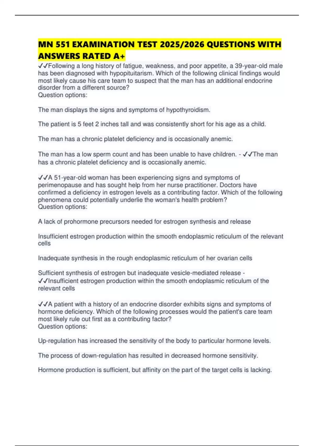 MN 551 EXAMINATION TEST 2025/2026 QUESTIONS WITH