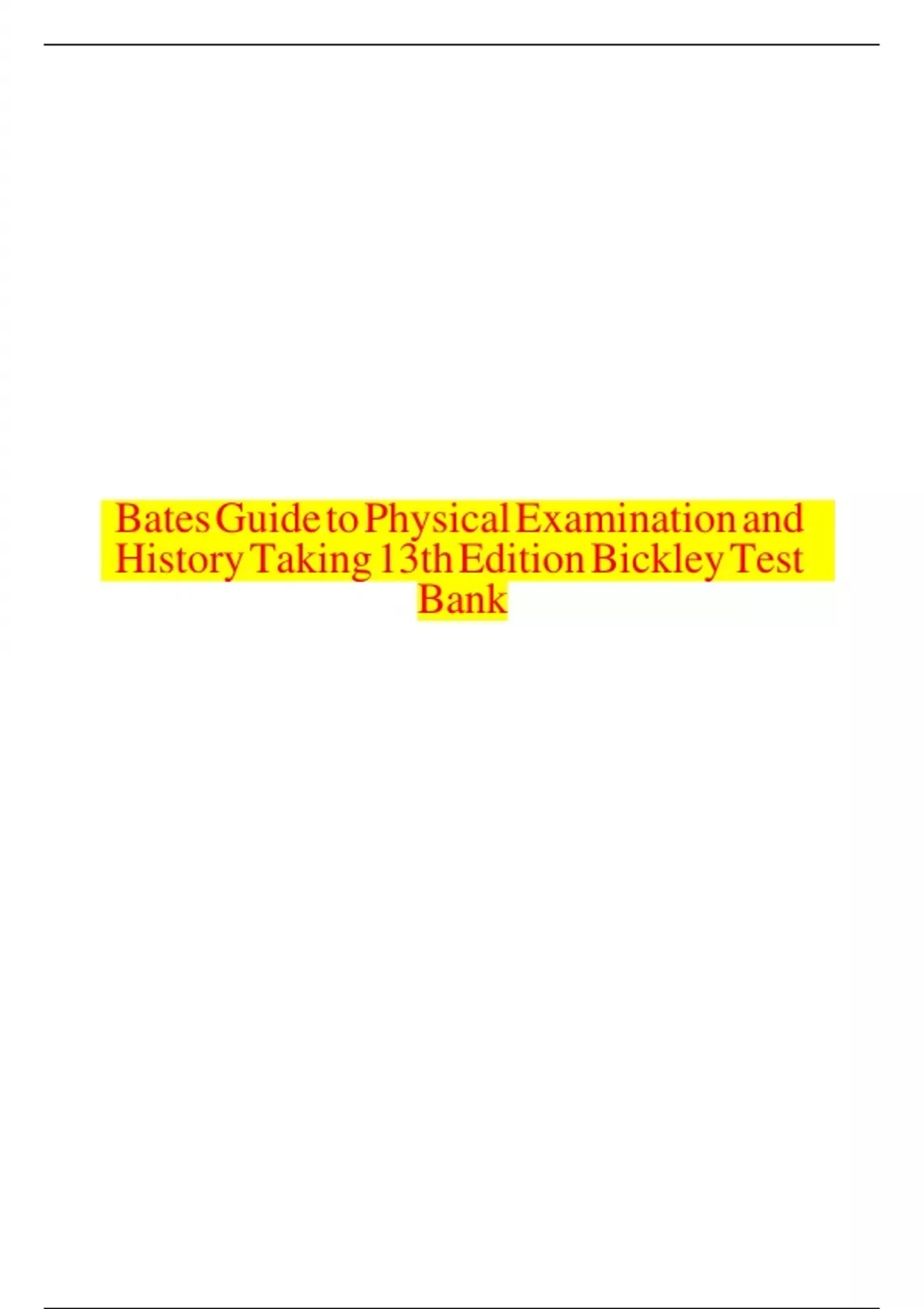 COMPLETE Test Bank for Bates’ Guide to Physical Examination and History Taking 13th Edition By Bickley, ISBN: 9781496398178, All 27 Chapters Covered, Verified Latest Edition