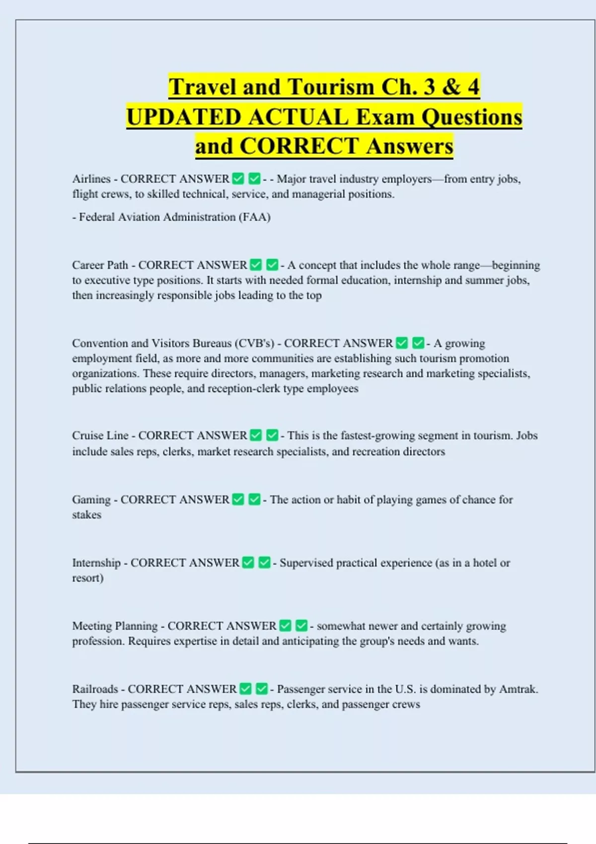 Airlines - CORRECT ANSWER - - Major travel industry employers—from entry jobs,