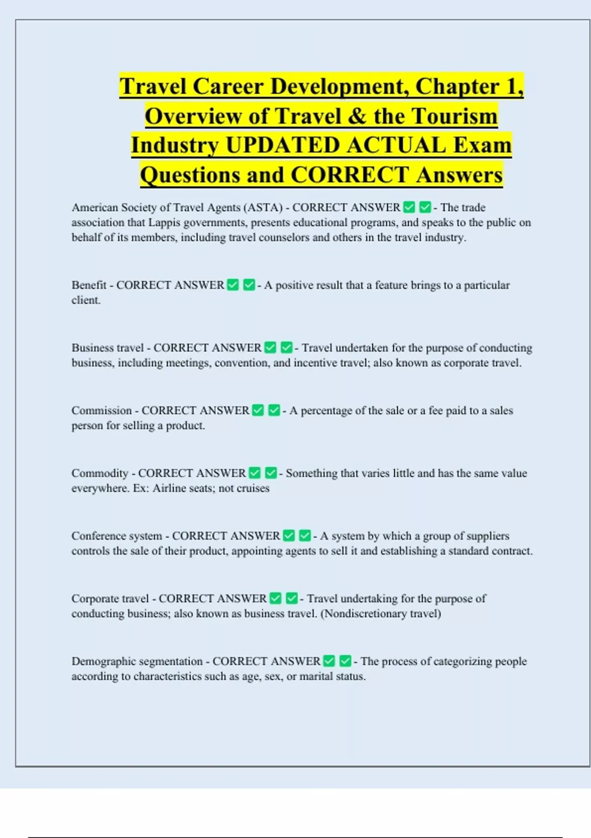 Leisure travel - CORRECT ANSWER - Travel done for pleasure in the broadest sense of