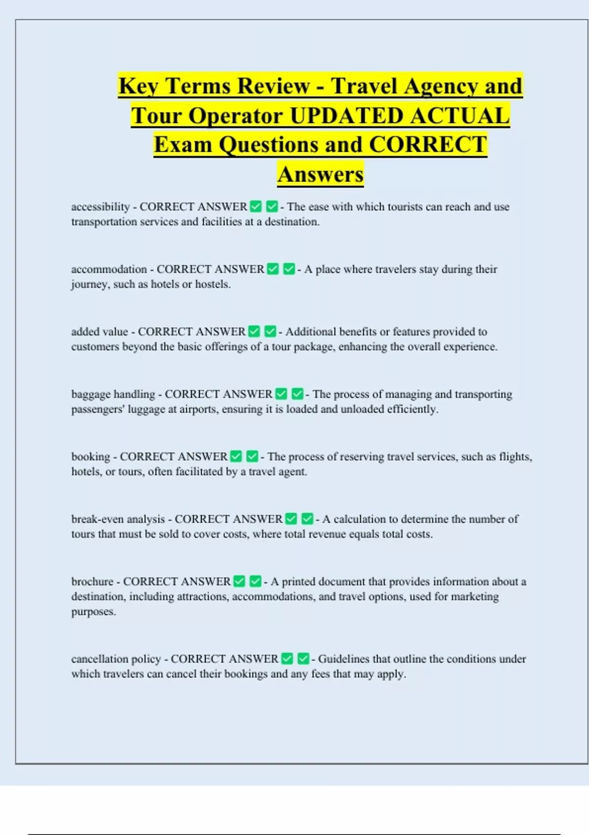 escorted tour - CORRECT ANSWER - A travel package that includes a tour manager who