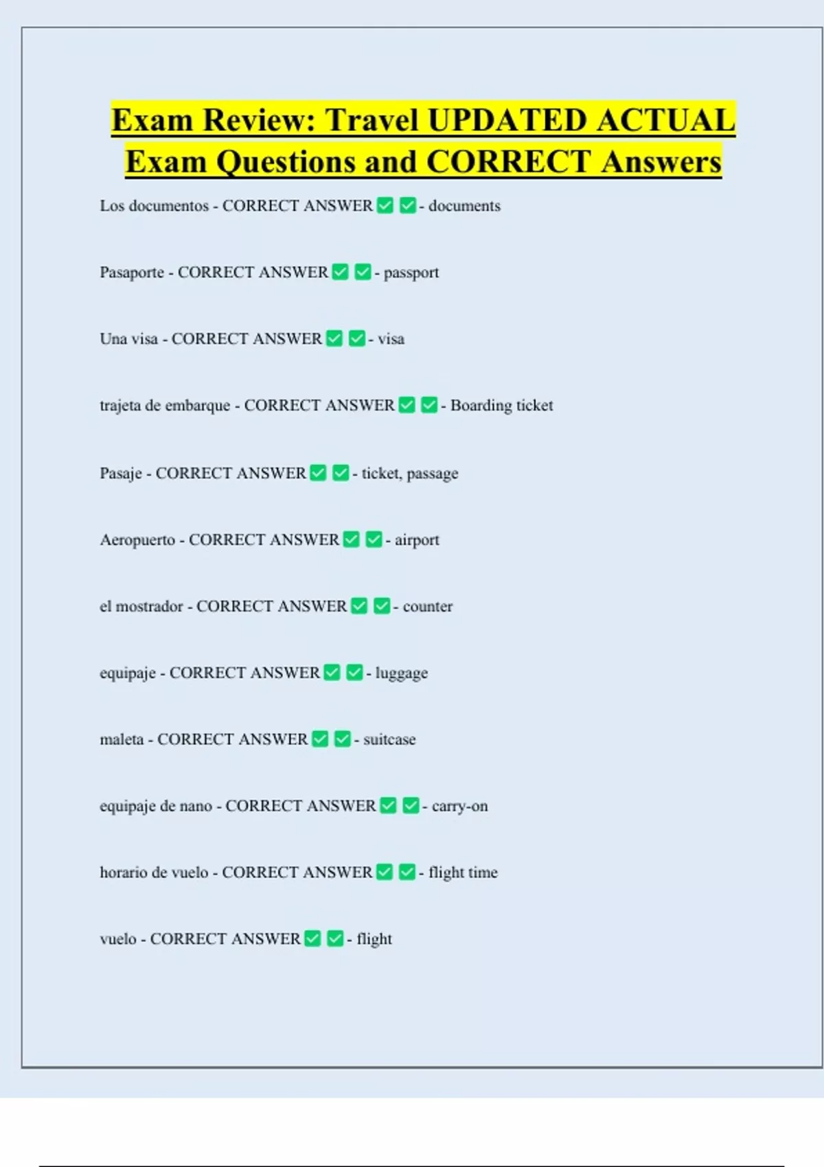 Pasaporte - CORRECT ANSWER - passport