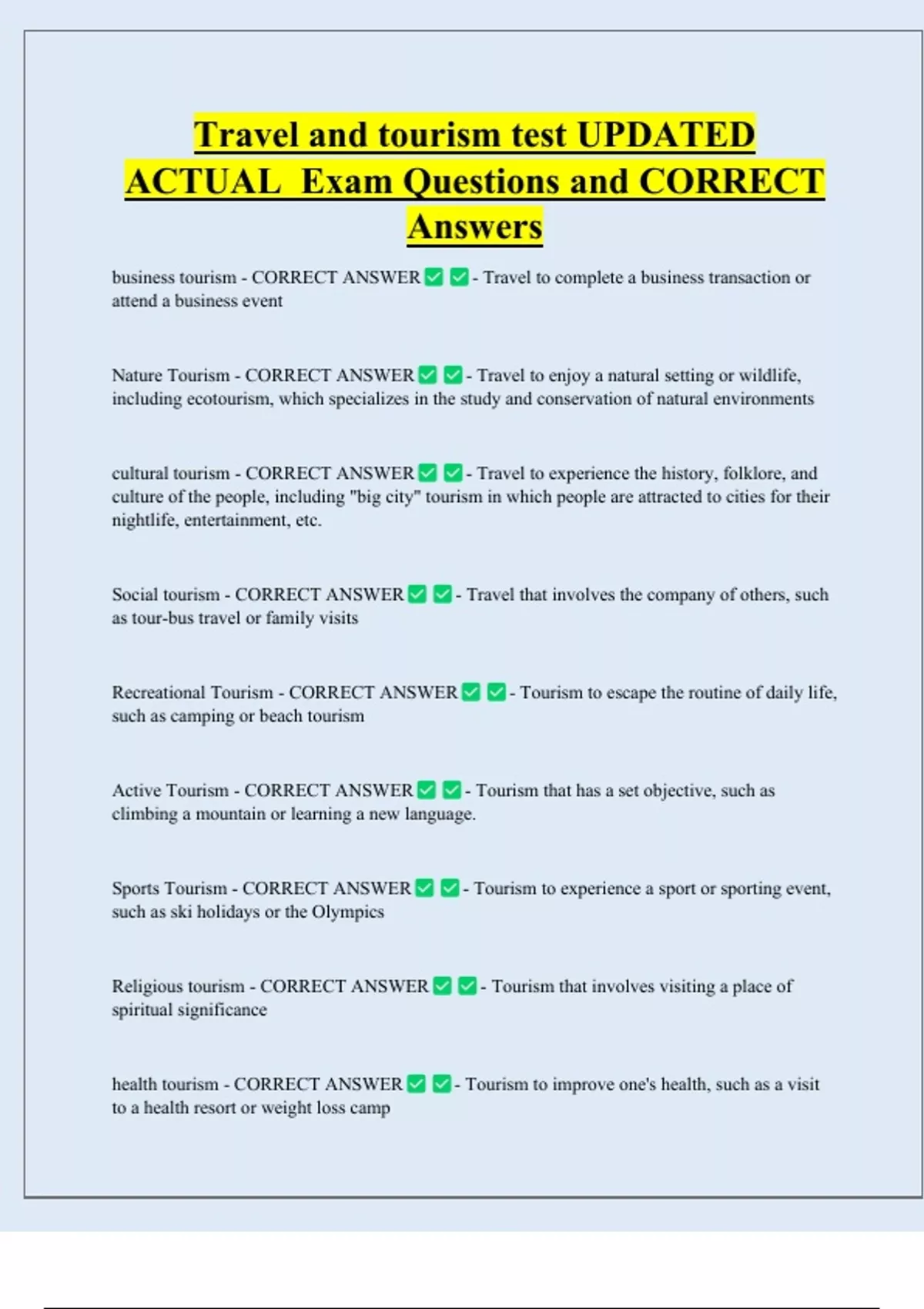 Recreational Tourism - CORRECT ANSWER - Tourism to escape the routine of daily life,