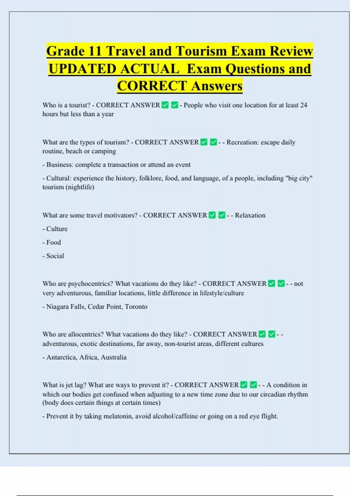 What are the types of tourism? - CORRECT ANSWER - - Recreation: escape daily