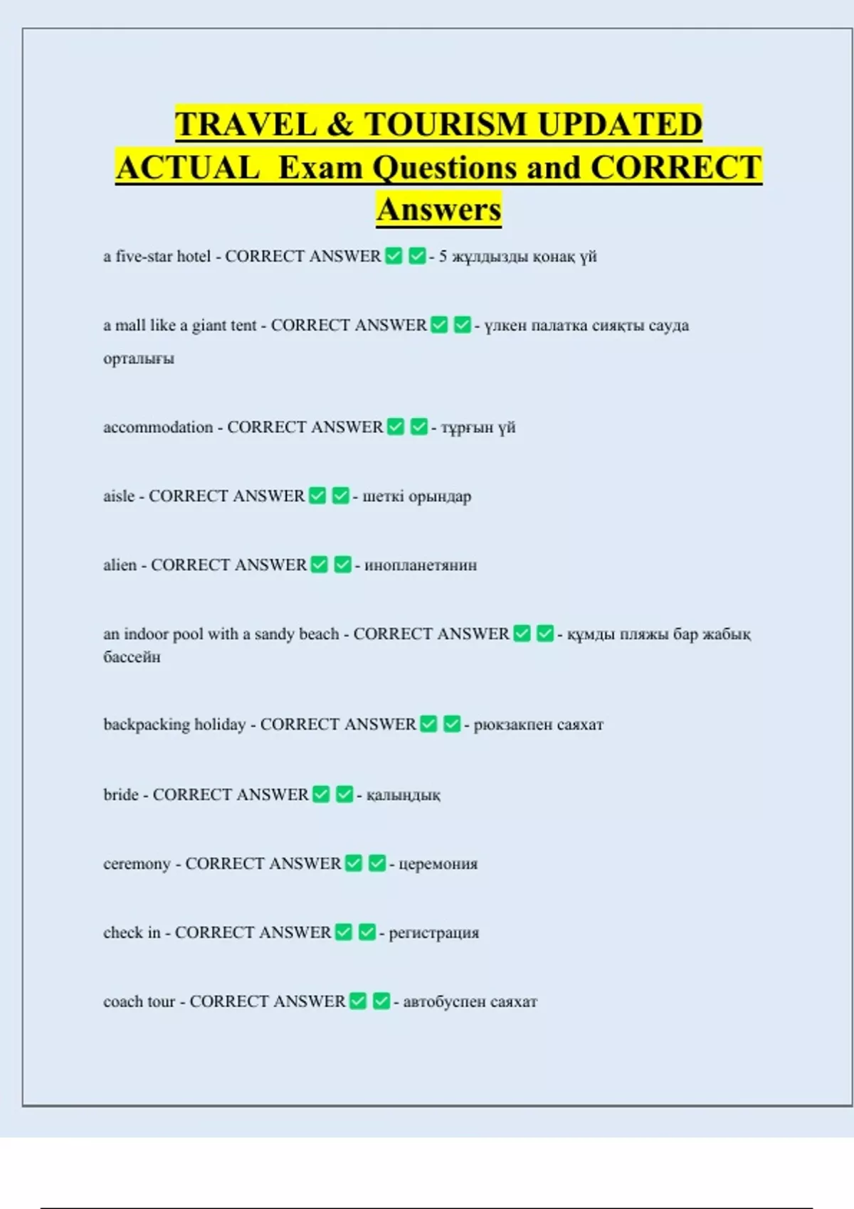 a five-star hotel - CORRECT ANSWER - 5 жұлдызды қонақ үй