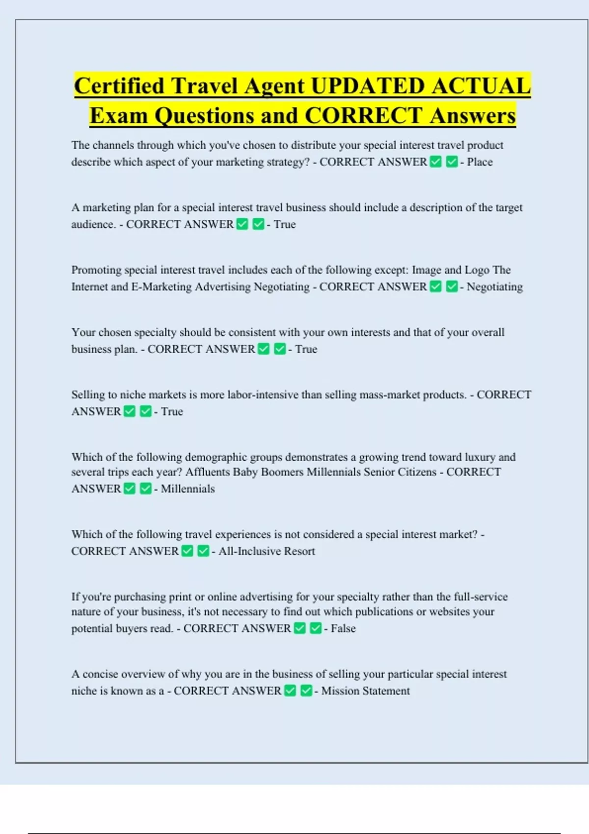 CORRECT ANSWER - All-Inclusive Resort