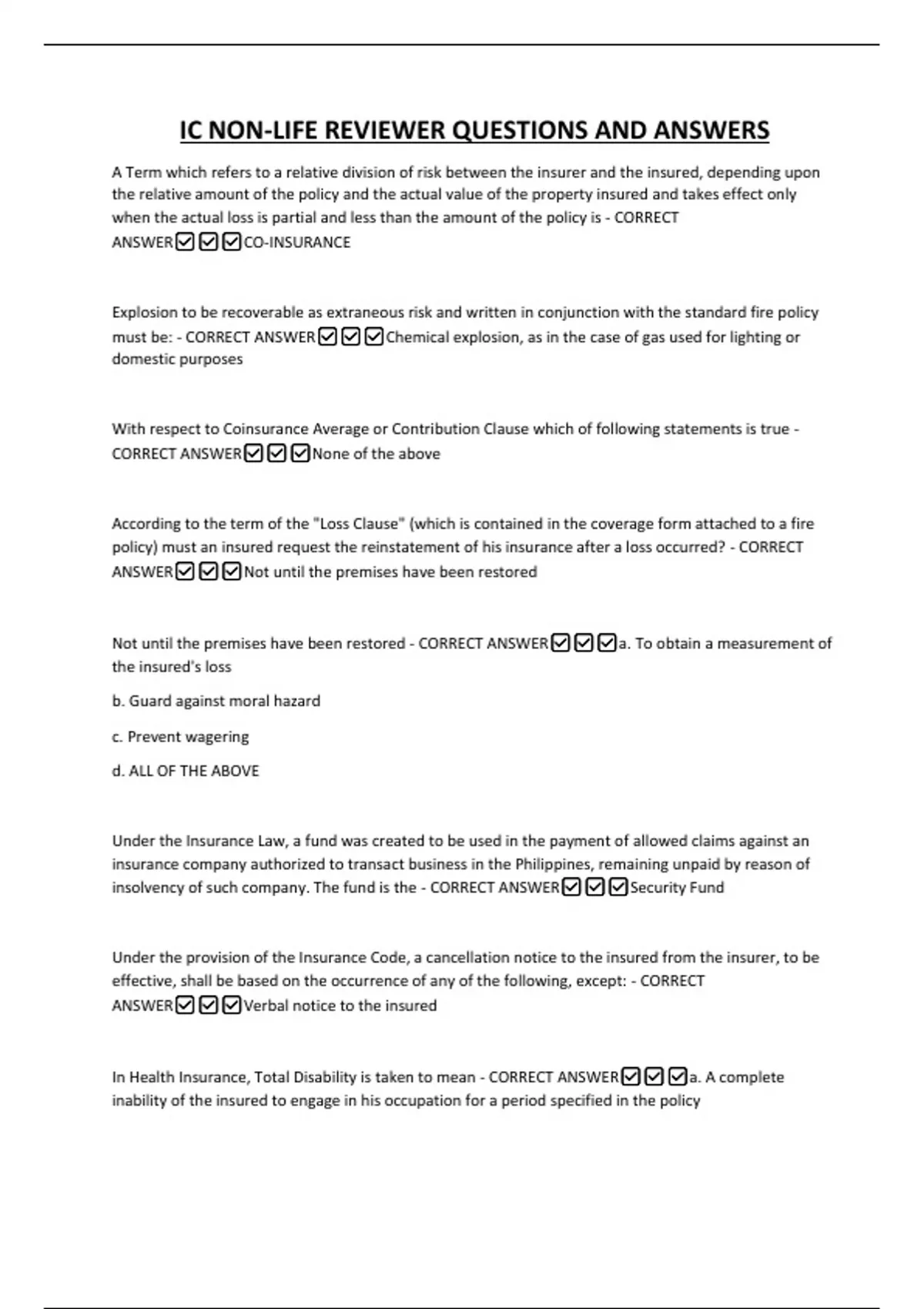 In Health Insurance, Total Disability is taken to mean - CORRECT ANSWER✅✅✅a. A complete