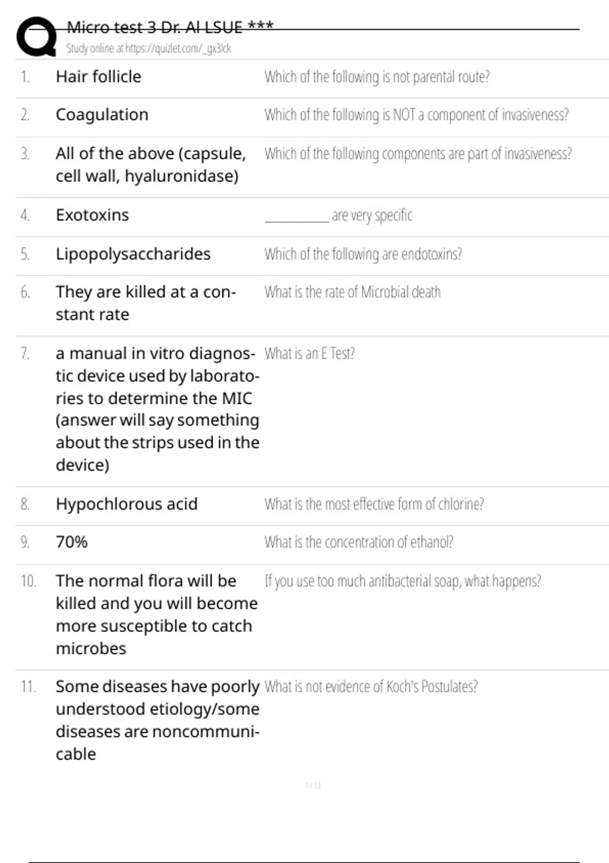 , Micro test 3 Dr. Al LSUE ***
