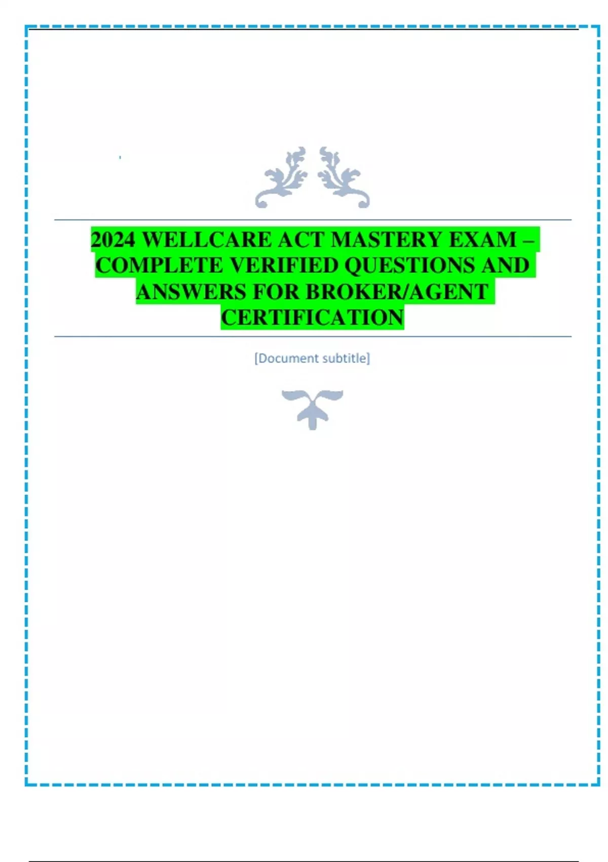 2024 WELLCARE ACT MASTERY EXAM – COMPLETE VERIFIED QUESTIONS AND ANSWERS FOR BROKER/AGENT CERTIFICATION