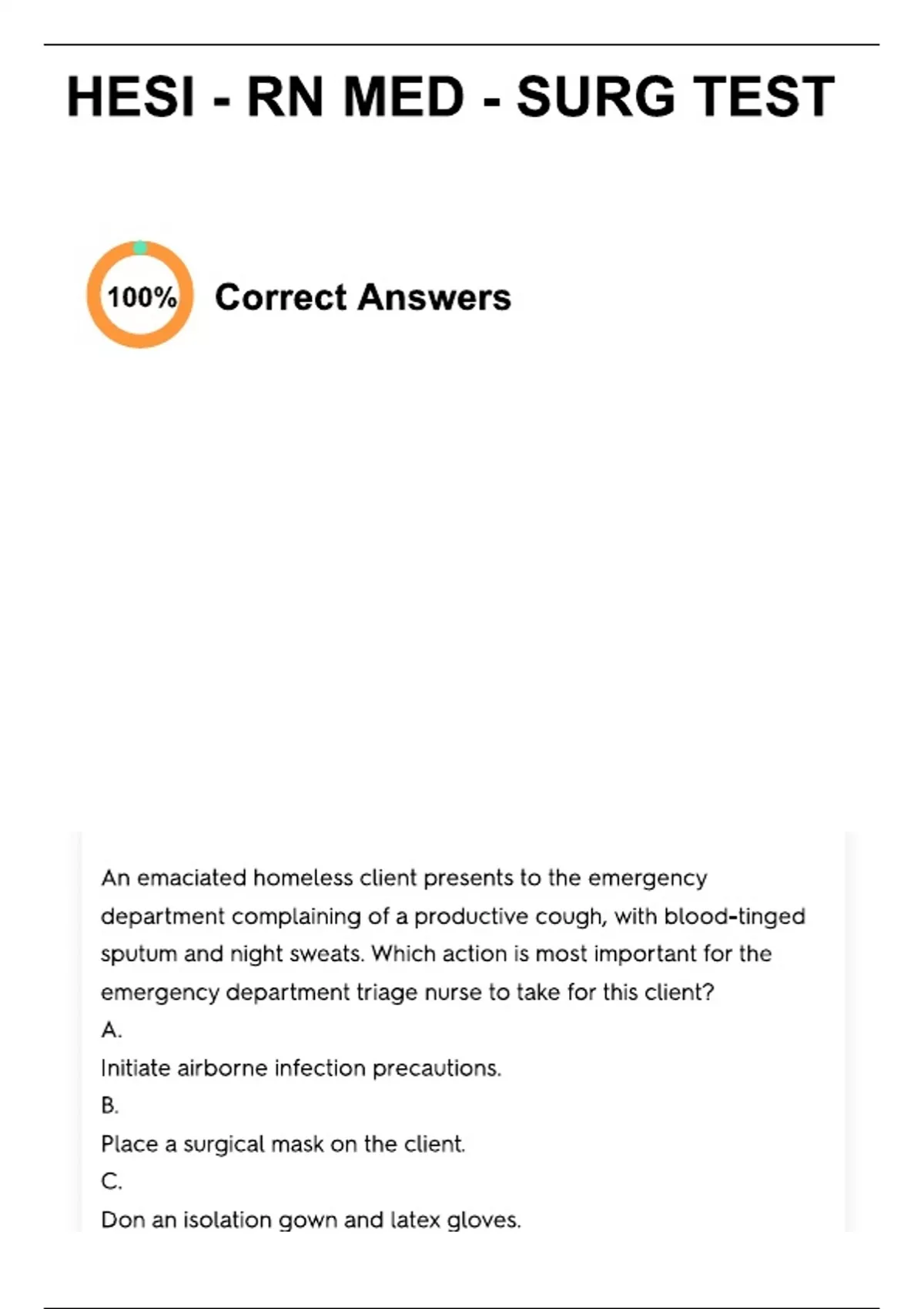 HESI-RN Med-Surg Test 2025 Questions with 100% TRUSTED Complete, trusted solutions and explanations.