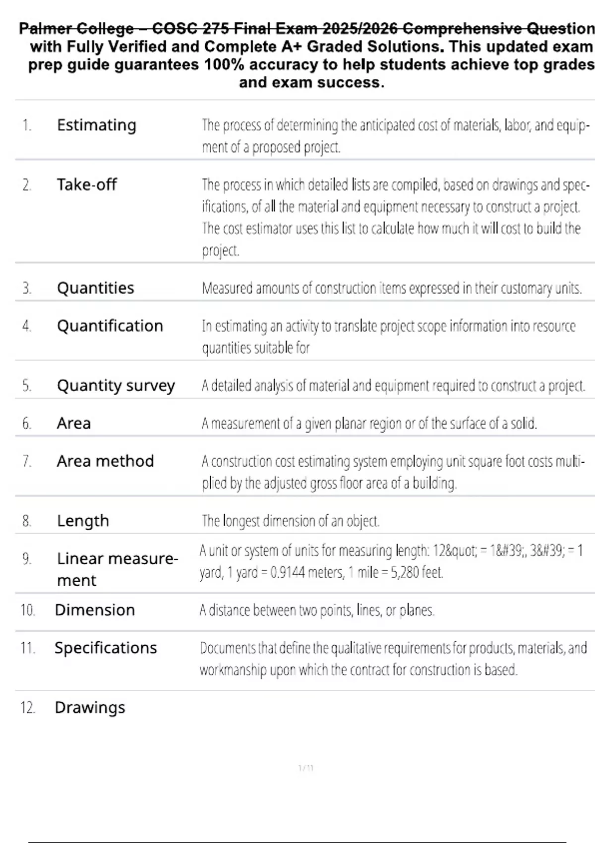 This detailed study guide is designed for students preparing for the COSC 275 Final Exam at Palmer College during the 2025/2026 academic year. It features comprehensive exam questions with fully verified, accurate solutions covering core computer science topics such as programming concepts, data structures, algorithms, and software development principles. This resource is ideal for students aiming for guaranteed success and a high grade in their final exam.