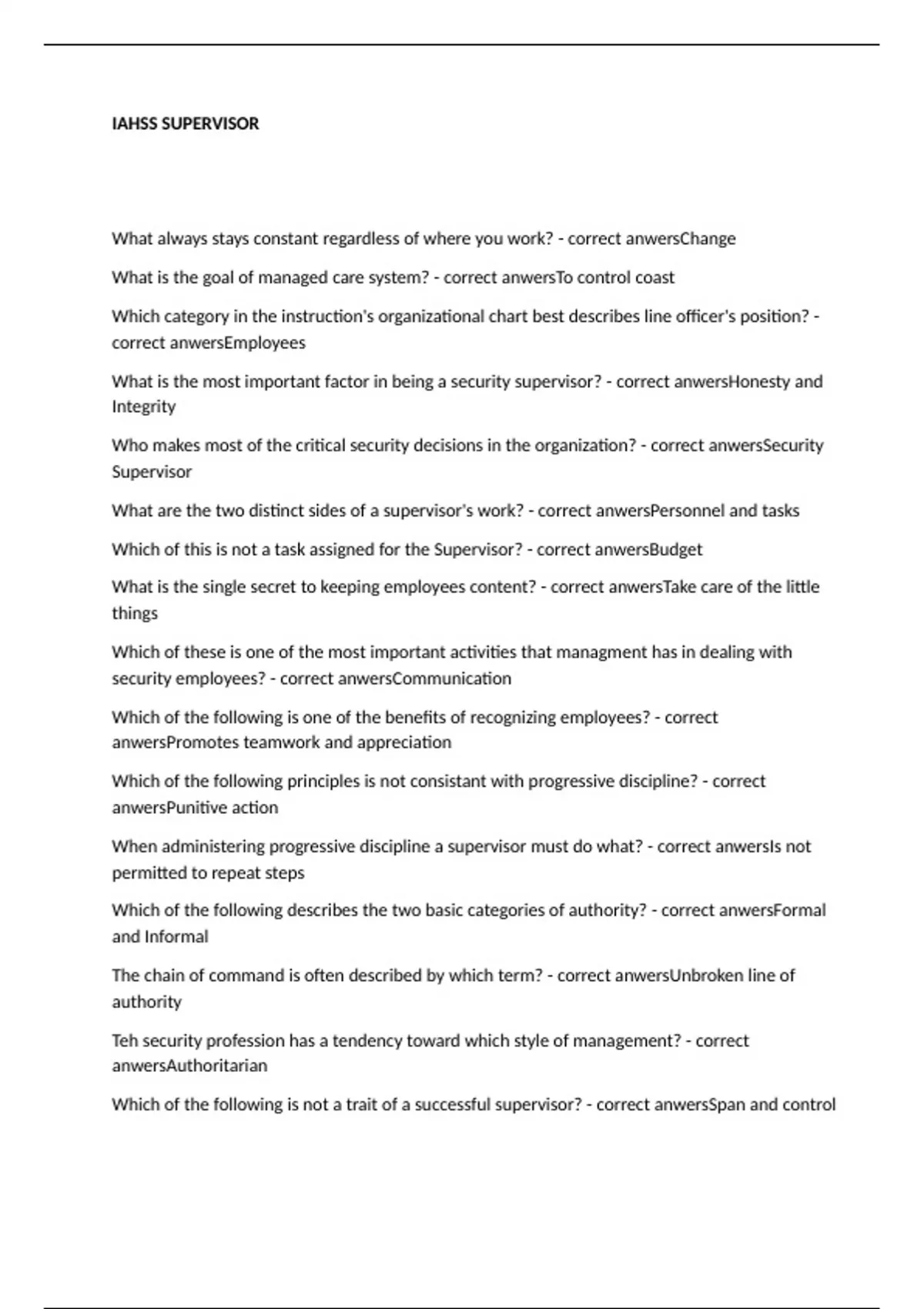 What is the most important factor in being a security supervisor? - correct anwersHonesty and
