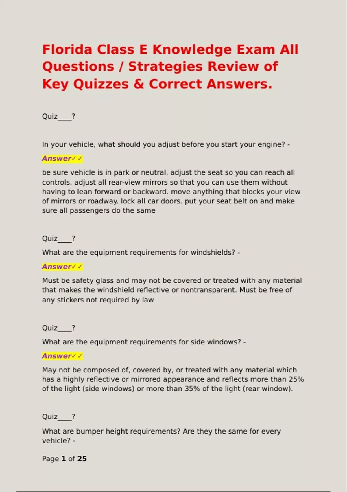 Florida Class E Knowledge Exam All Questions / Strategies Review of Key Quizzes & Correct Answers.