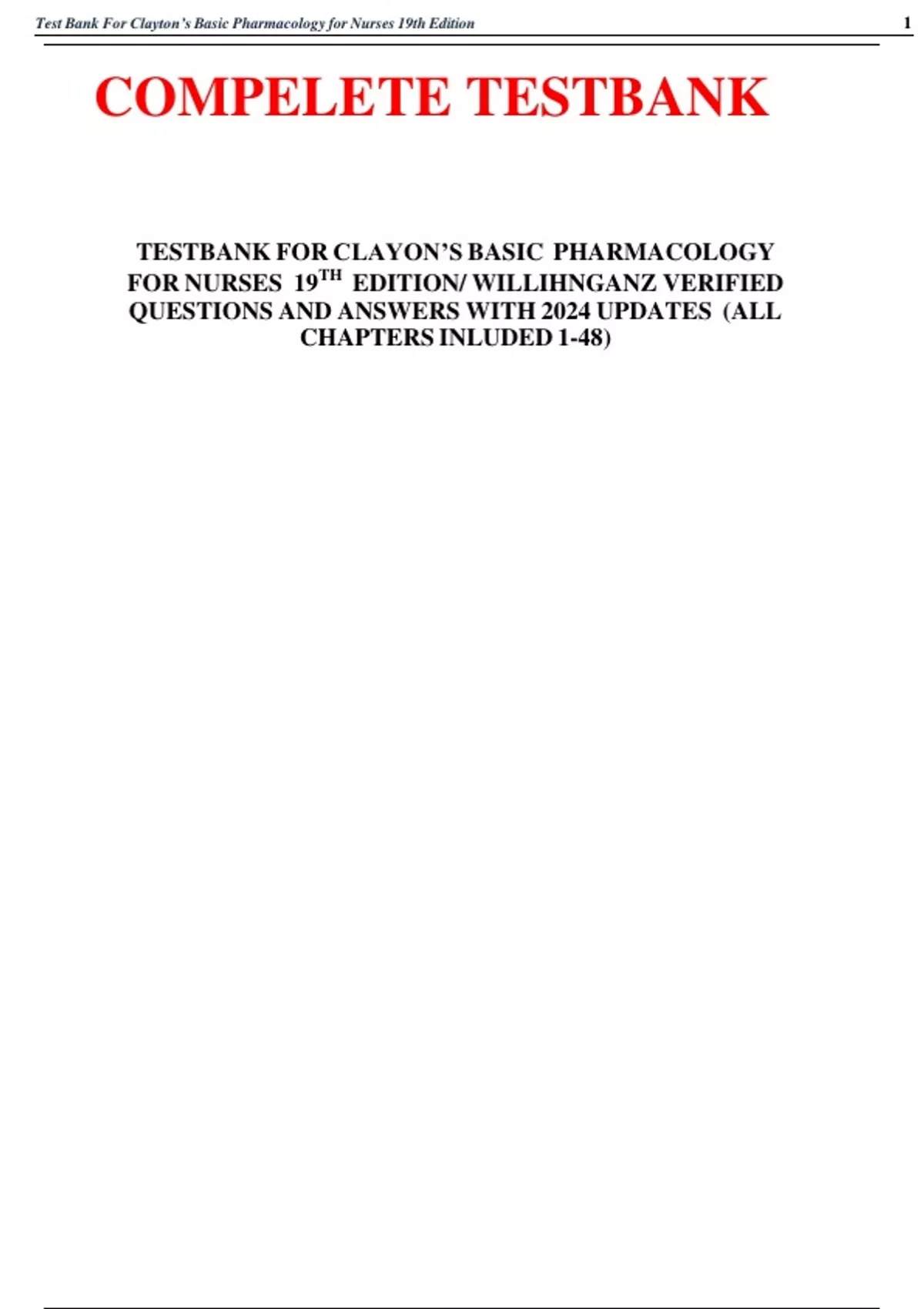 ,Test Bank For Clayton’s Basic Pharmacology for Nurses 19th Edition 2