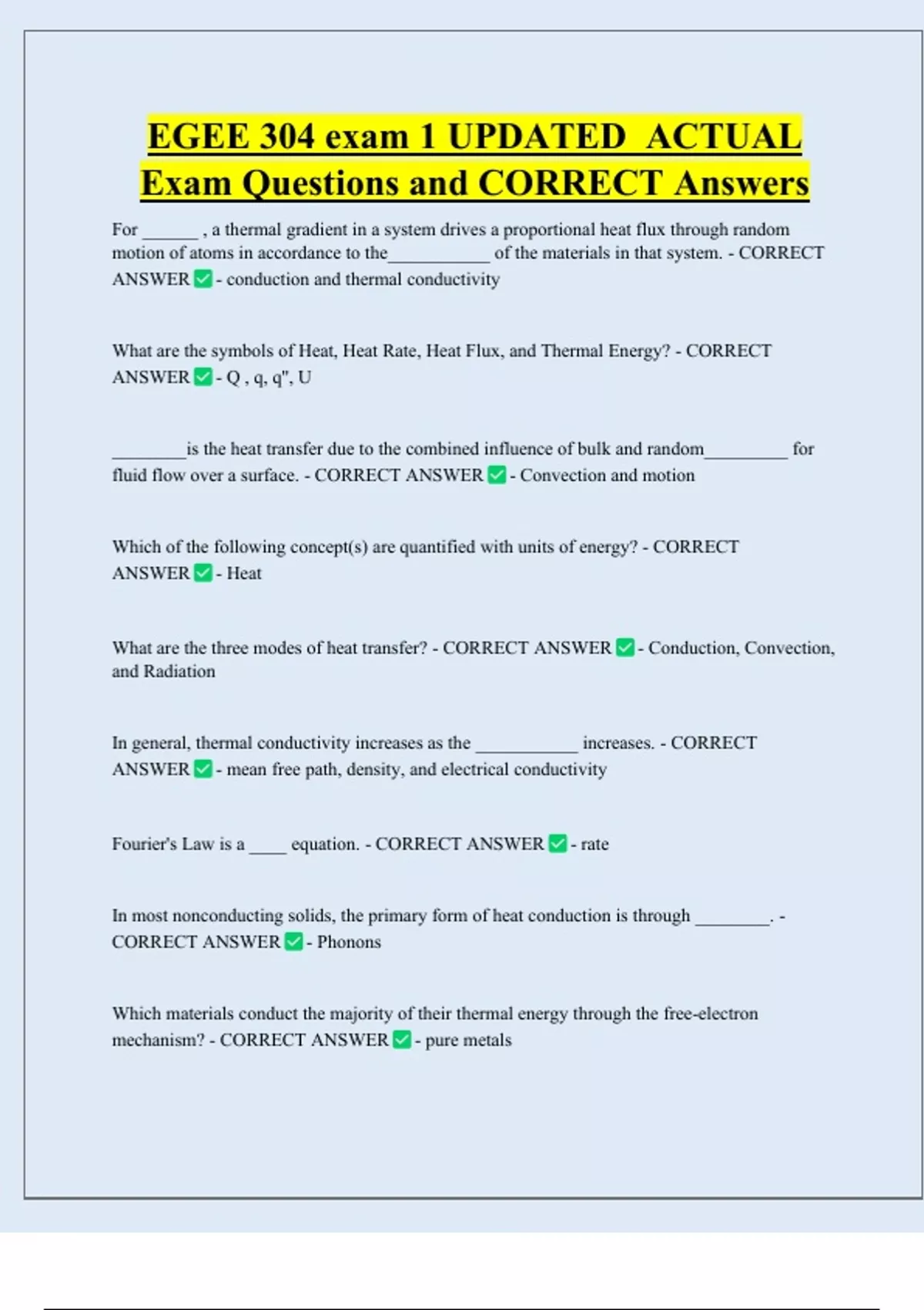 Exam Questions and CORRECT Answers