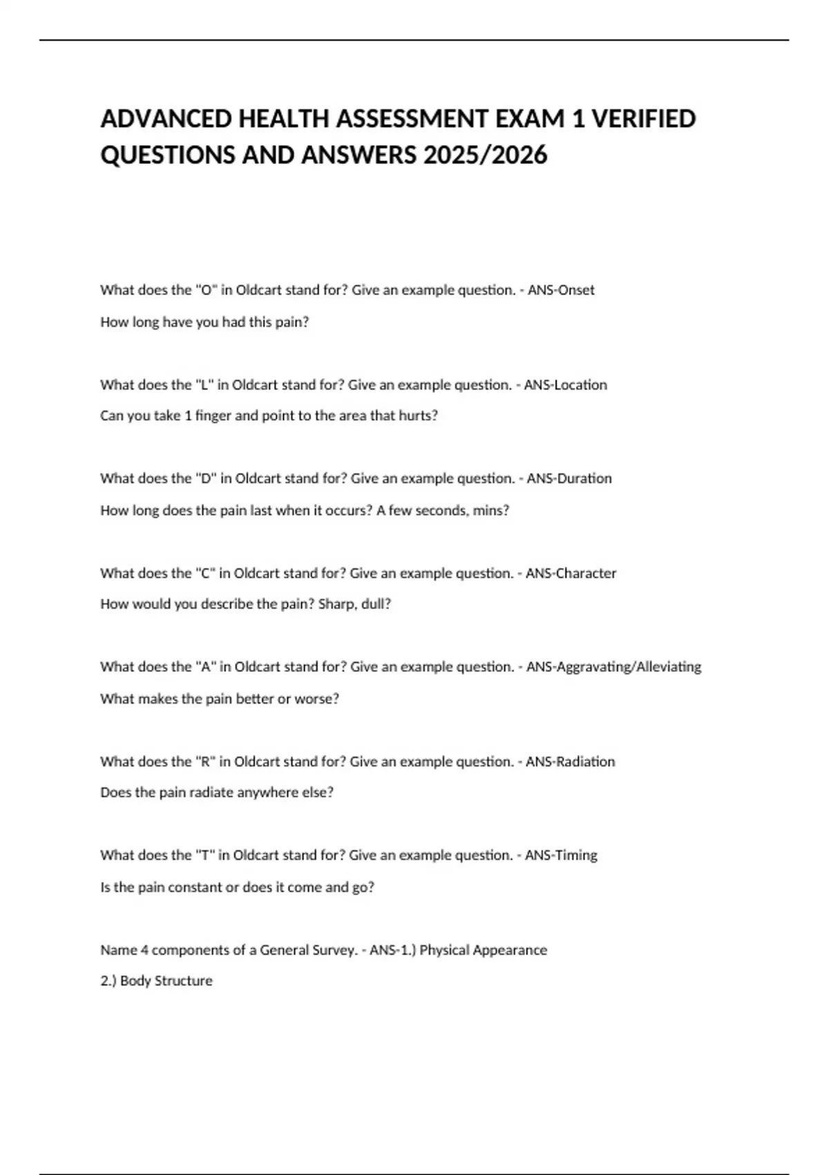 ADVANCED HEALTH ASSESSMENT EXAM 1 VERIFIED QUESTIONS AND ANSWERS 2025/2026