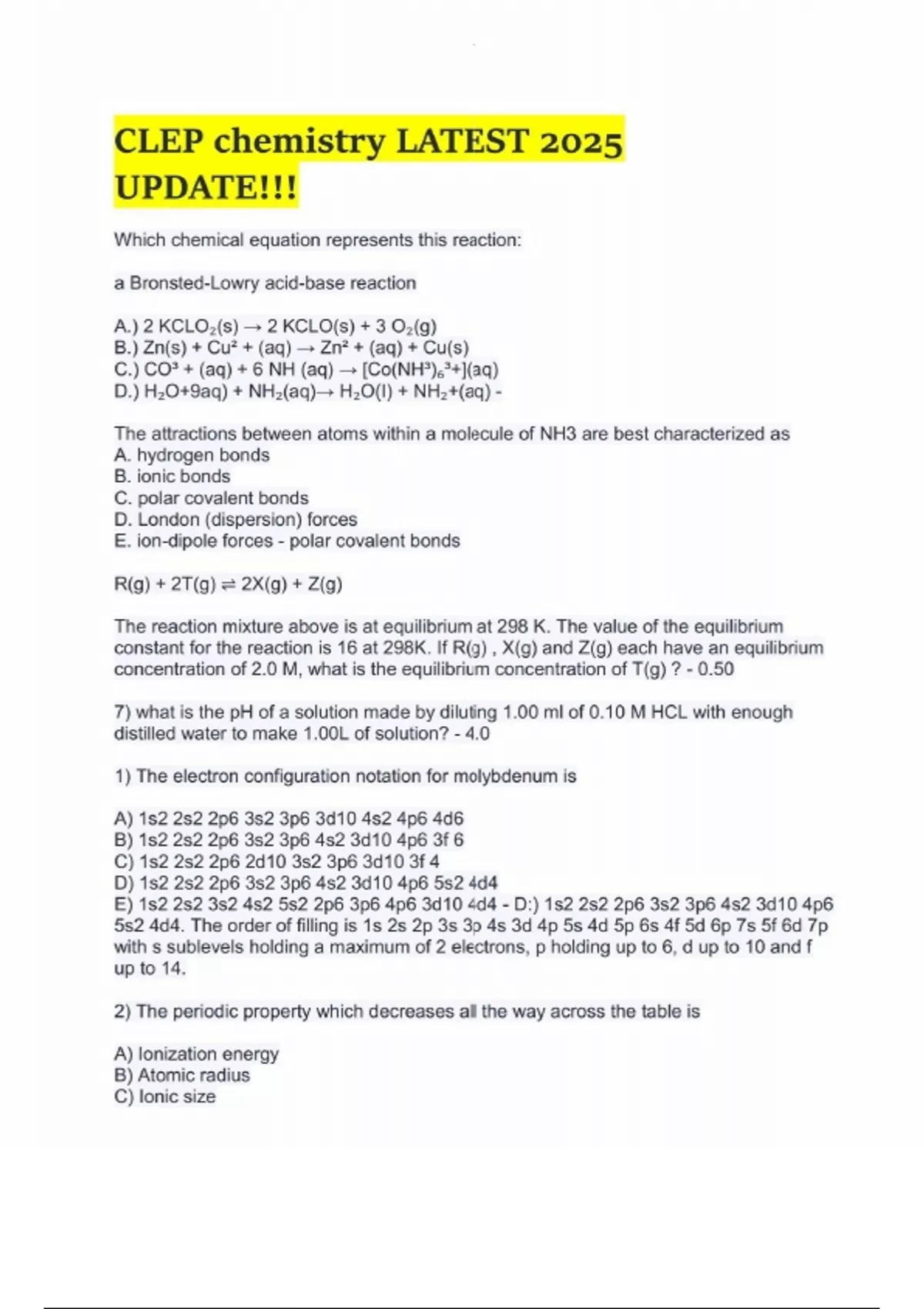 CLEP chemistry LATEST 2025 UPDATE!! CLEP chemistry LATEST 2025 UPDATE!!