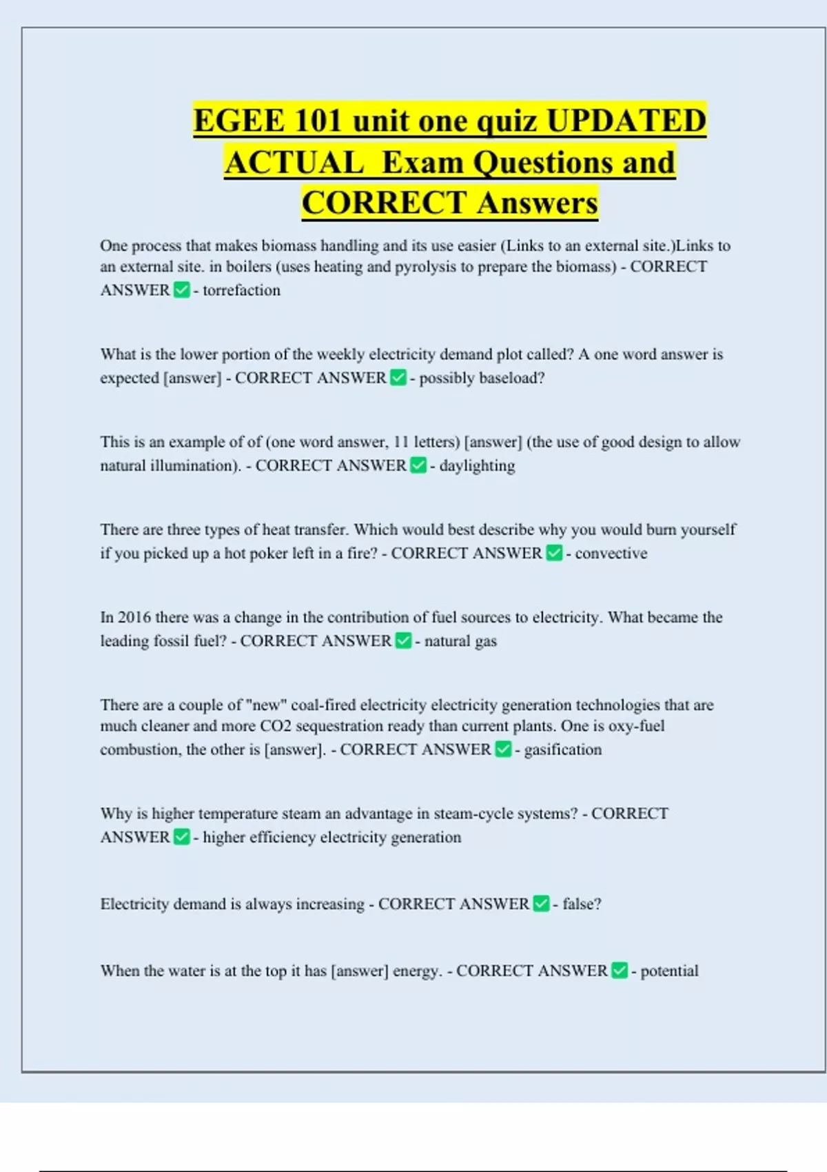 EGEE 101 unit one quiz UPDATED ACTUAL Exam Questions and CORRECT Answers