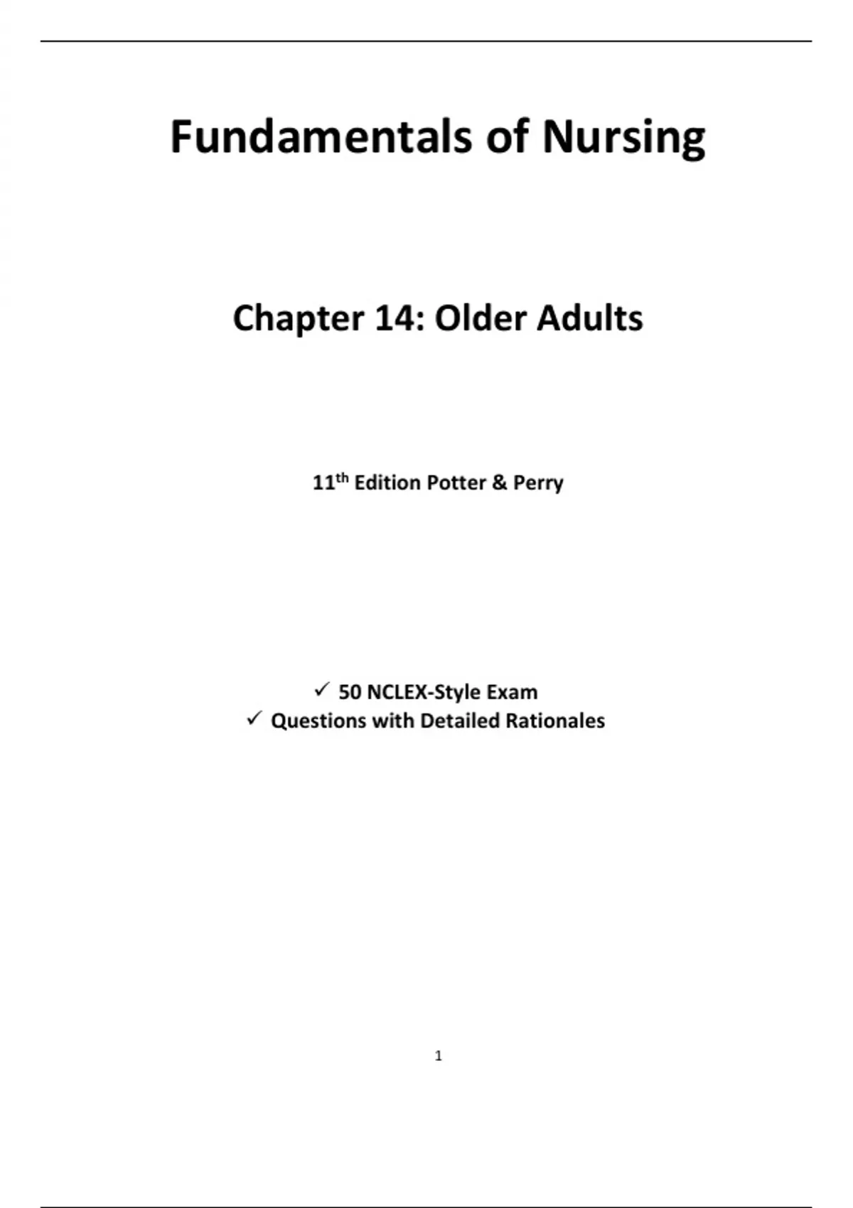 Chapter 14 Older Adults Fundamentals of Nursing 11th Edition (Potter & Perry) 50 NCLEX-Style Exam Questions with Detailed Rationales