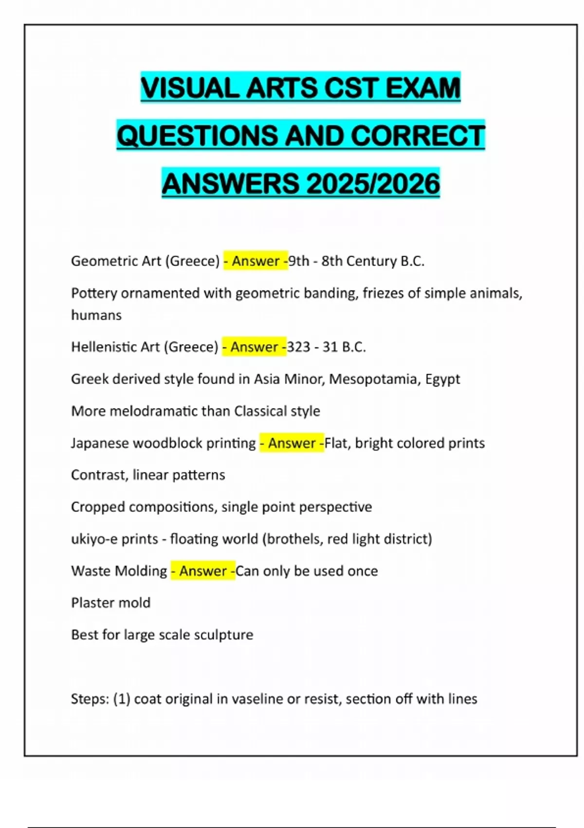VISUAL ART EXAM REVIEW QUESTIONS AND CORRECT ANSWERS 2025/2026