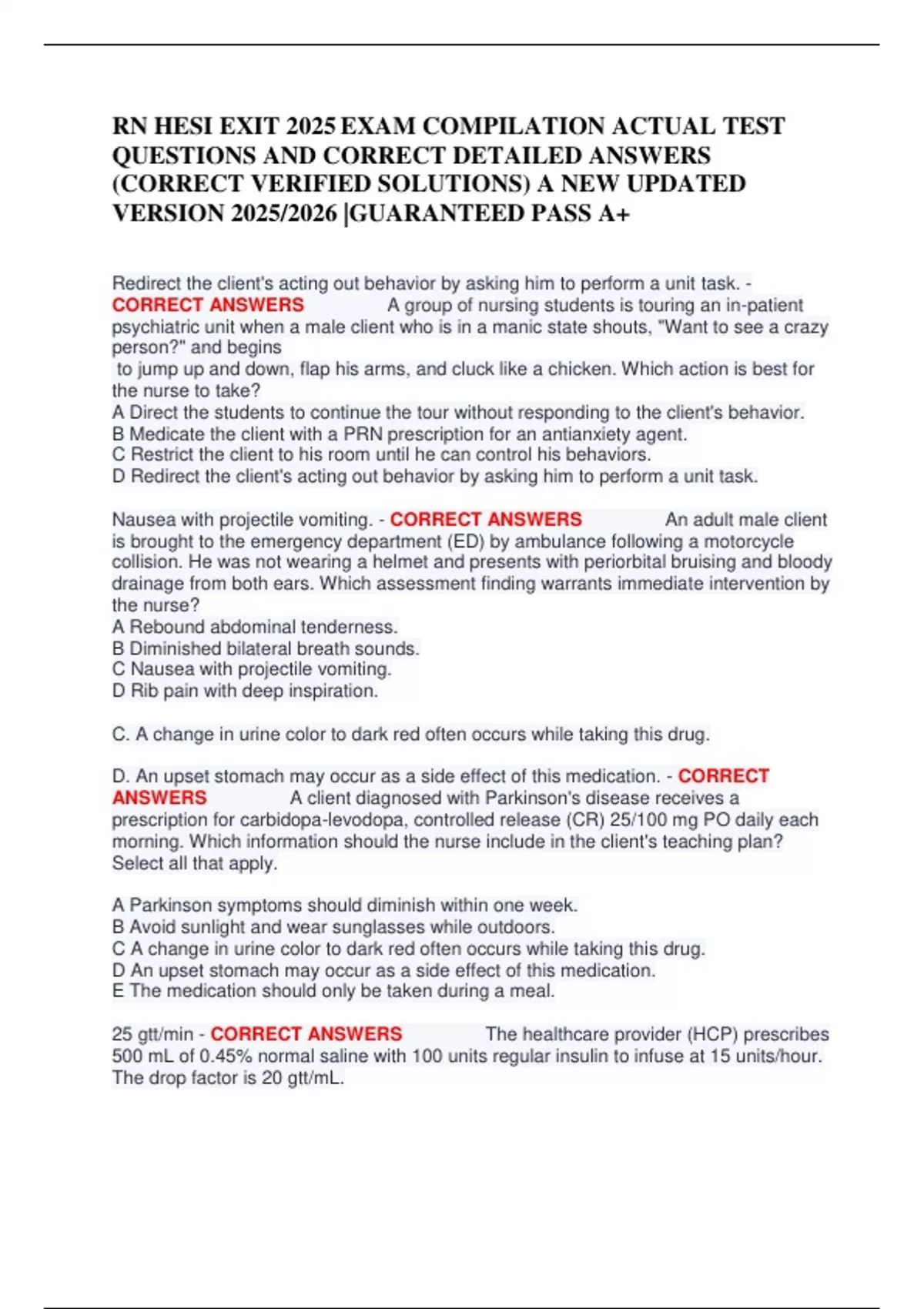 RN HESI EXIT 2025 EXAM COMPILATION ACTUAL TEST QUESTIONS AND CORRECT DETAILED ANSWERS (CORRECT VERIFIED SOLUTIONS) A NEW UPDATED VERSION 2025/2026 |GUARANTEED PASS A+