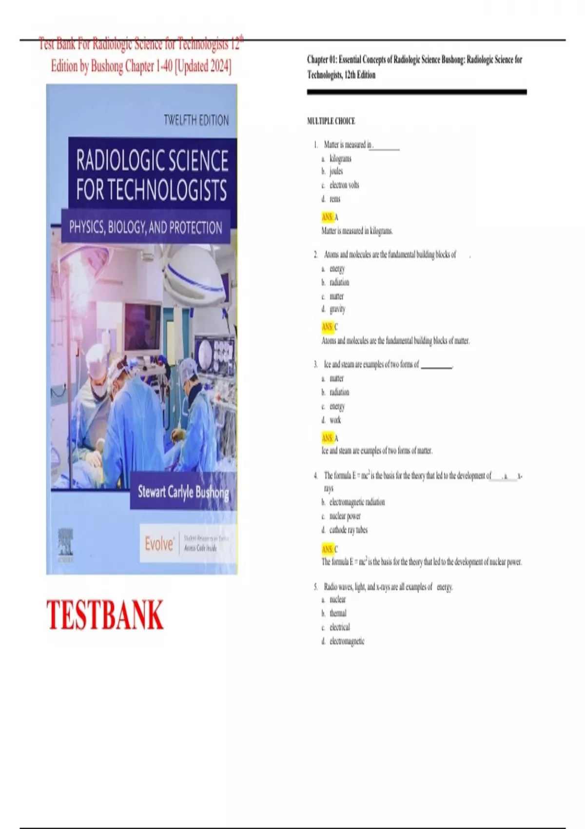 Chapter 01: Essential Concepts of Radiologic Science Bushong: Radiologic Science for