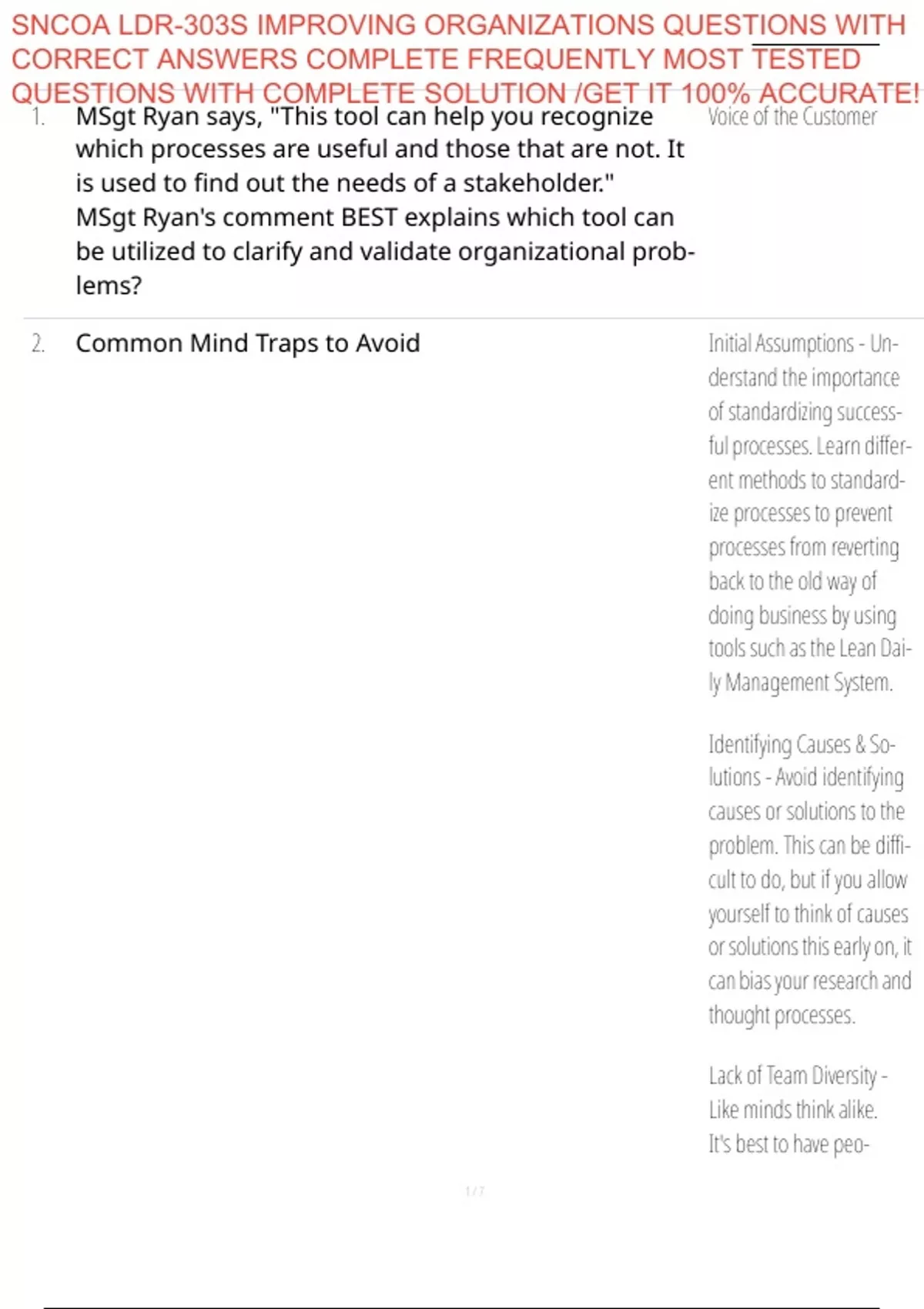 SNCOA LDR-303S IMPROVING ORGANIZATIONS QUESTIONS WITH