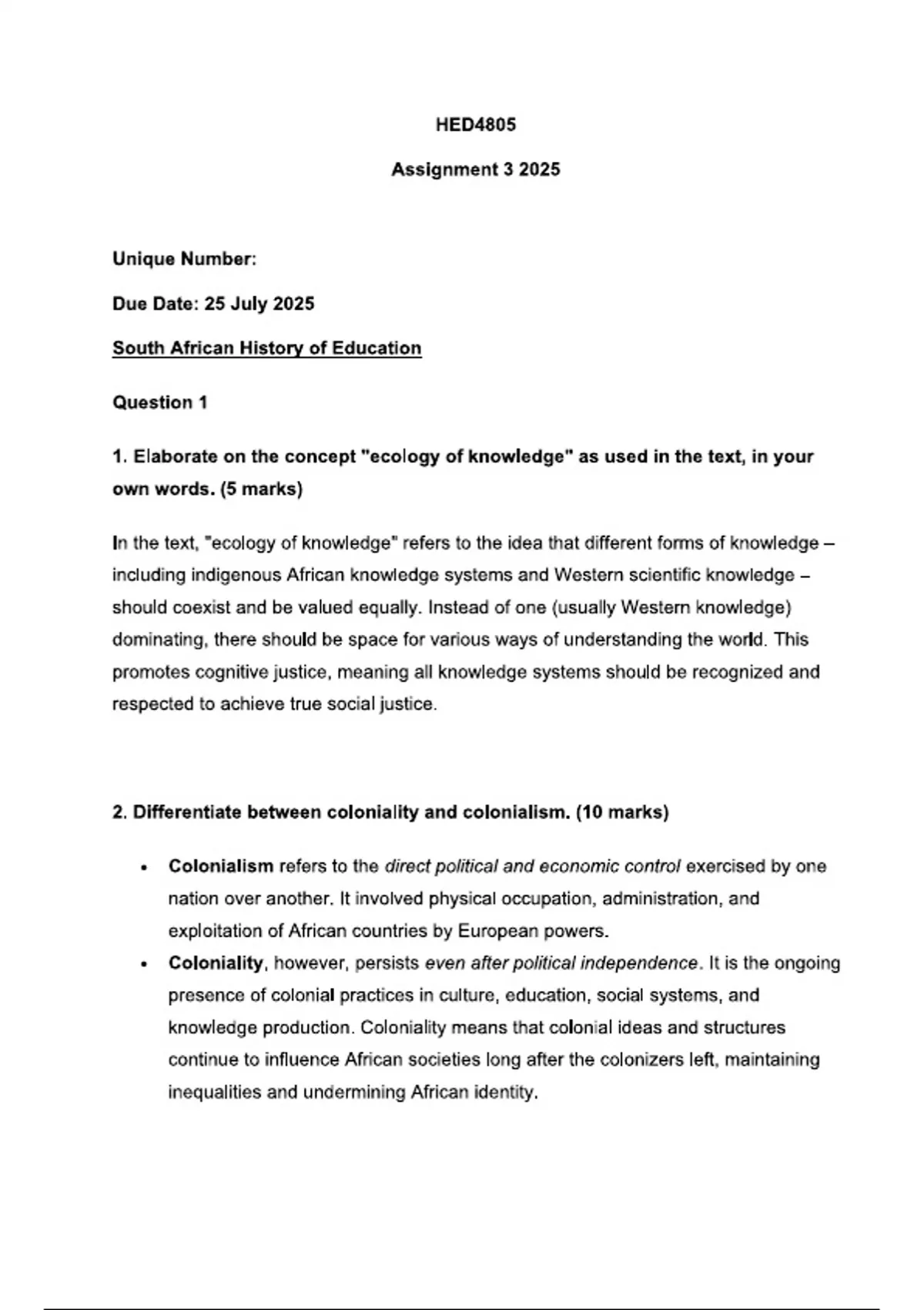 HED4805 Assignment 3 (ANSWERS) 2025 - DUE 25 July 2025