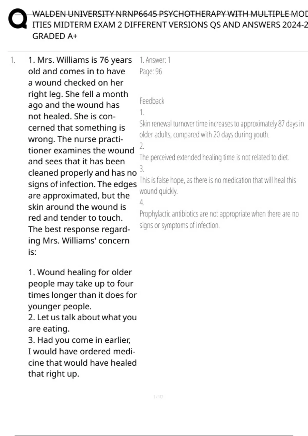 1. 1. Mrs. Williams is 76 years 1. Answer: 1