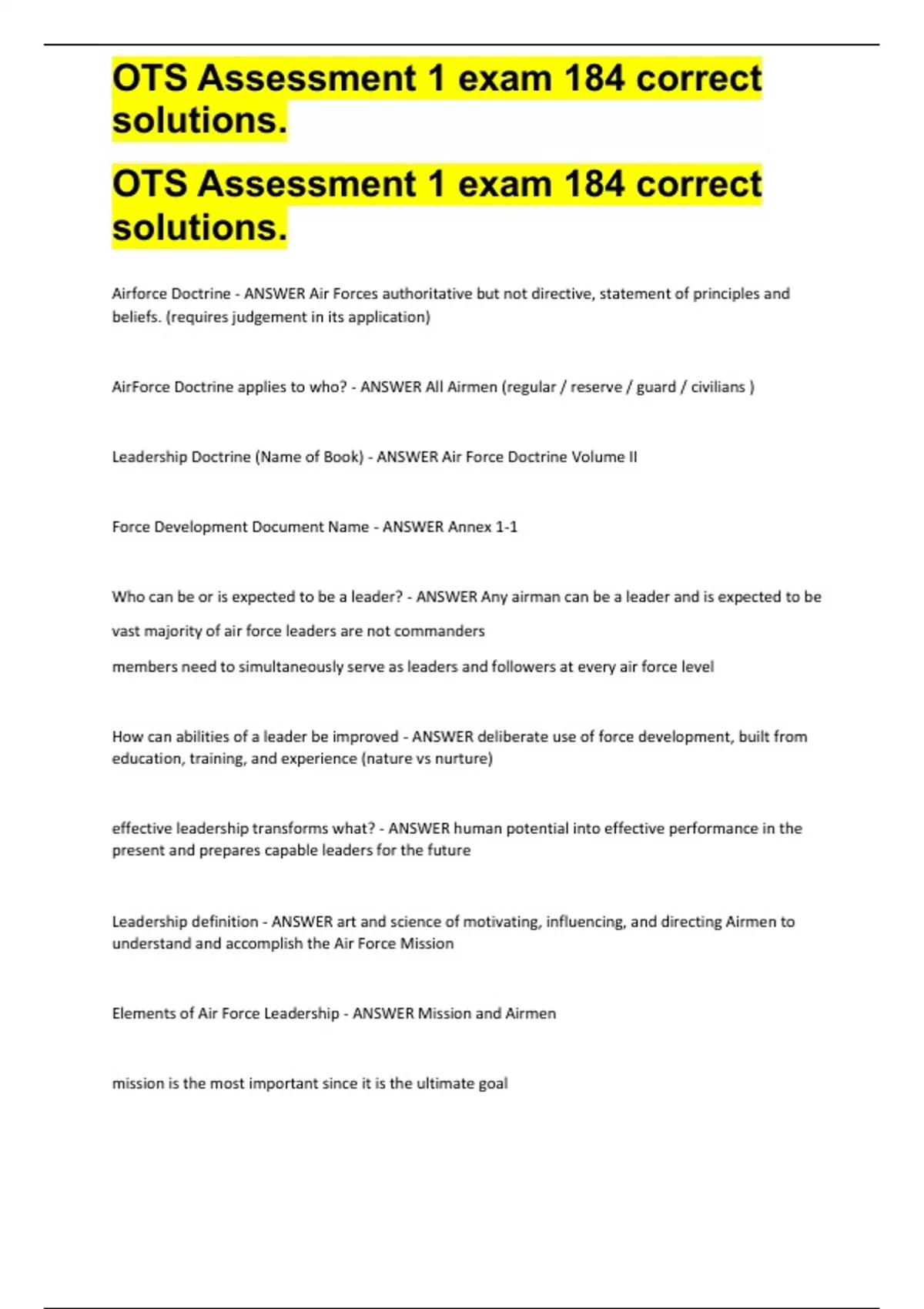 OTS Assessment 1 exam 184 correct