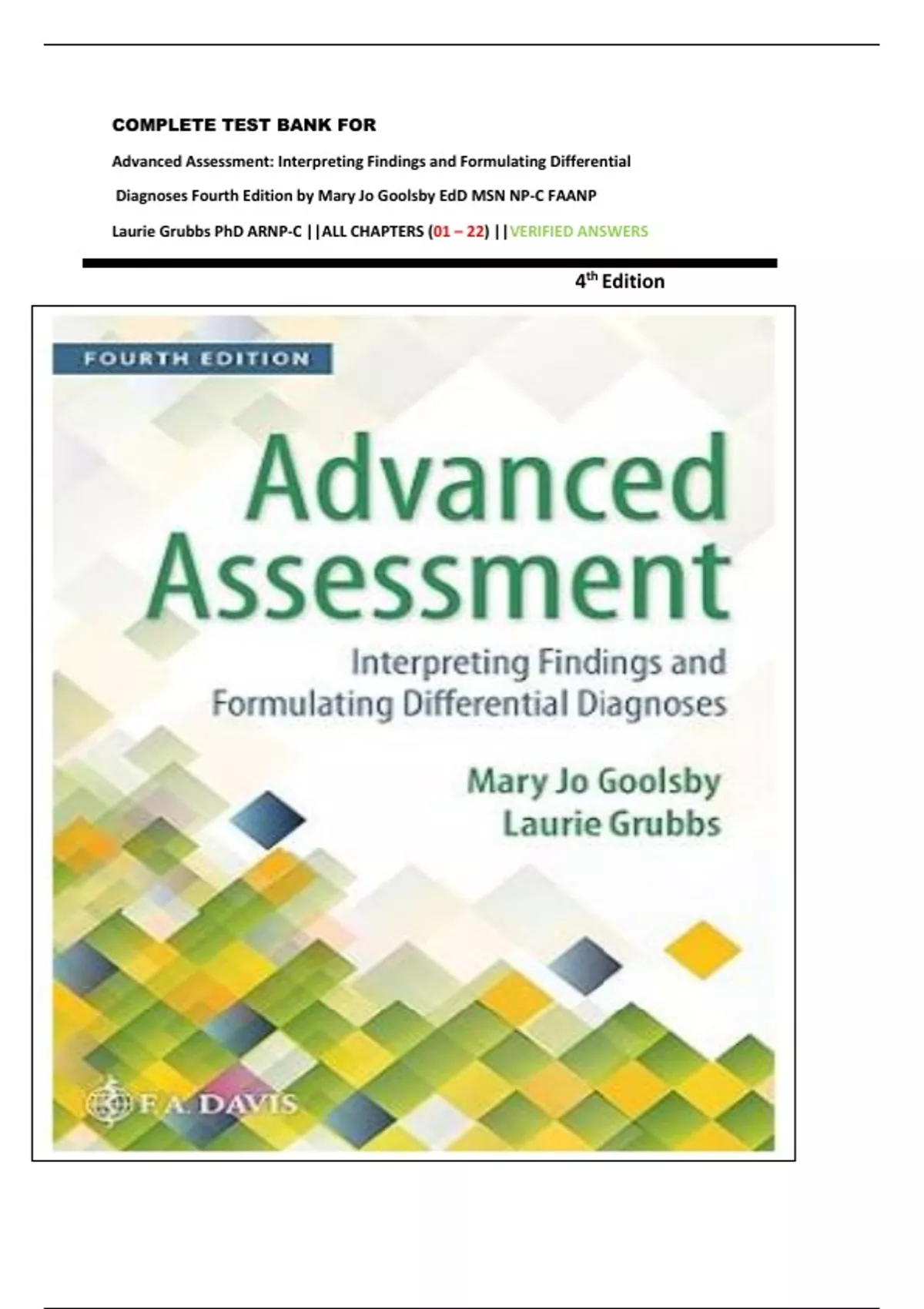 Diagnoses Fourth Edition by Mary Jo Goolsby EdD MSN NP-C FAANP