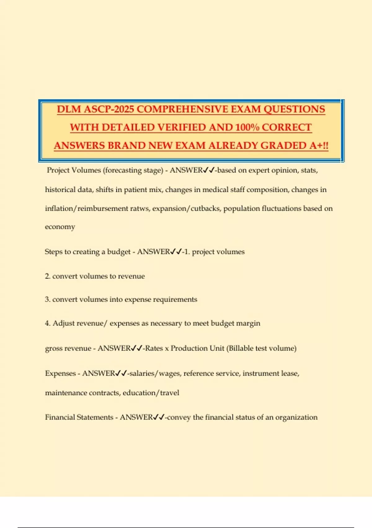 DLM ASCP-2025 COMPREHENSIVE EXAM QUESTIONS