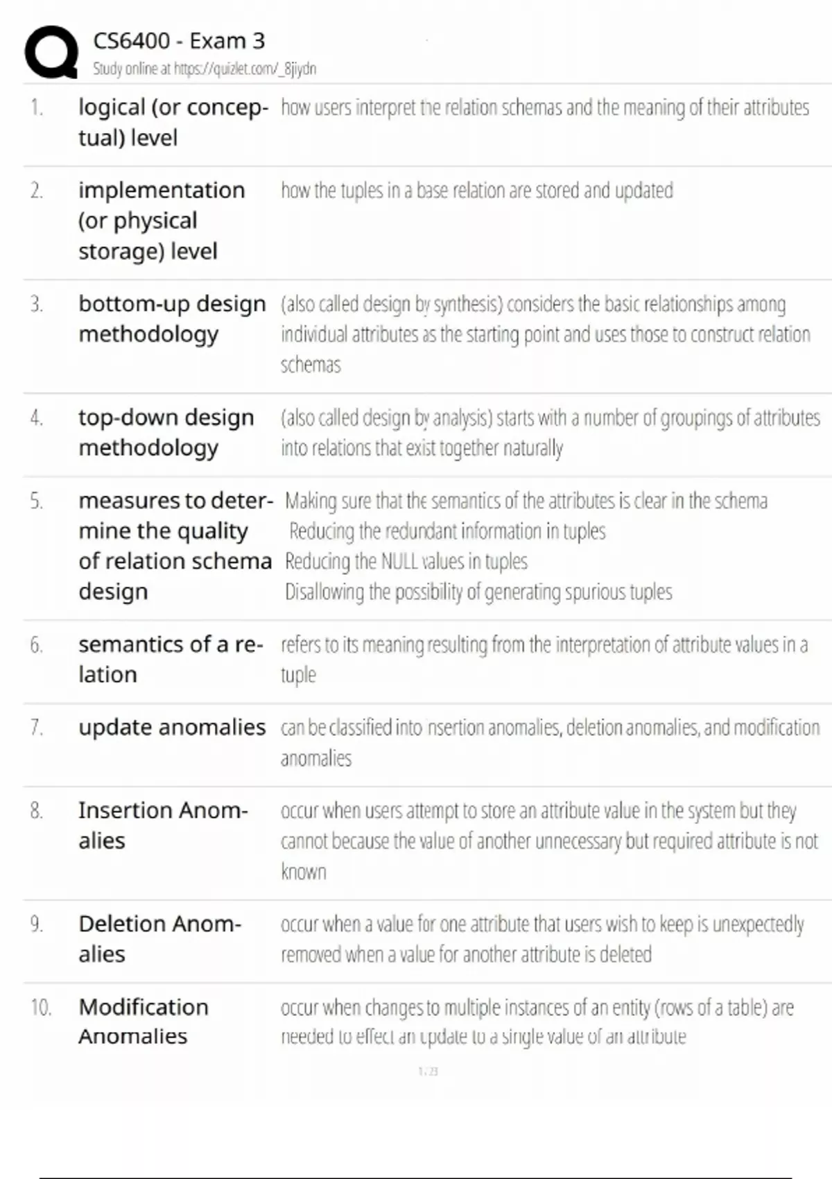 CS6400 advanced SQL and normalization exam prep A GRADE / 2025 version