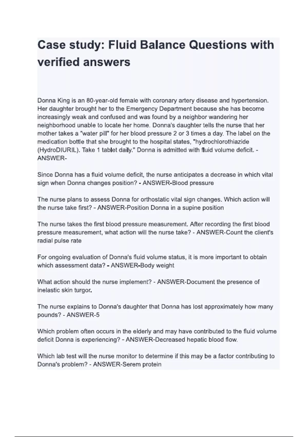 Case study Fluid Balance [NEW 2025/2026 UPDATE] ALL COMPREHENSIVE QUESTIONS AND A DETAILED BREAKDOWN OF ALL ANSWERS EXAM | COMPLETE TEST SOLUTION | PASSED & REWORDED FOR ORIGINALITY GRADE A+ | BRAND NEW!!!