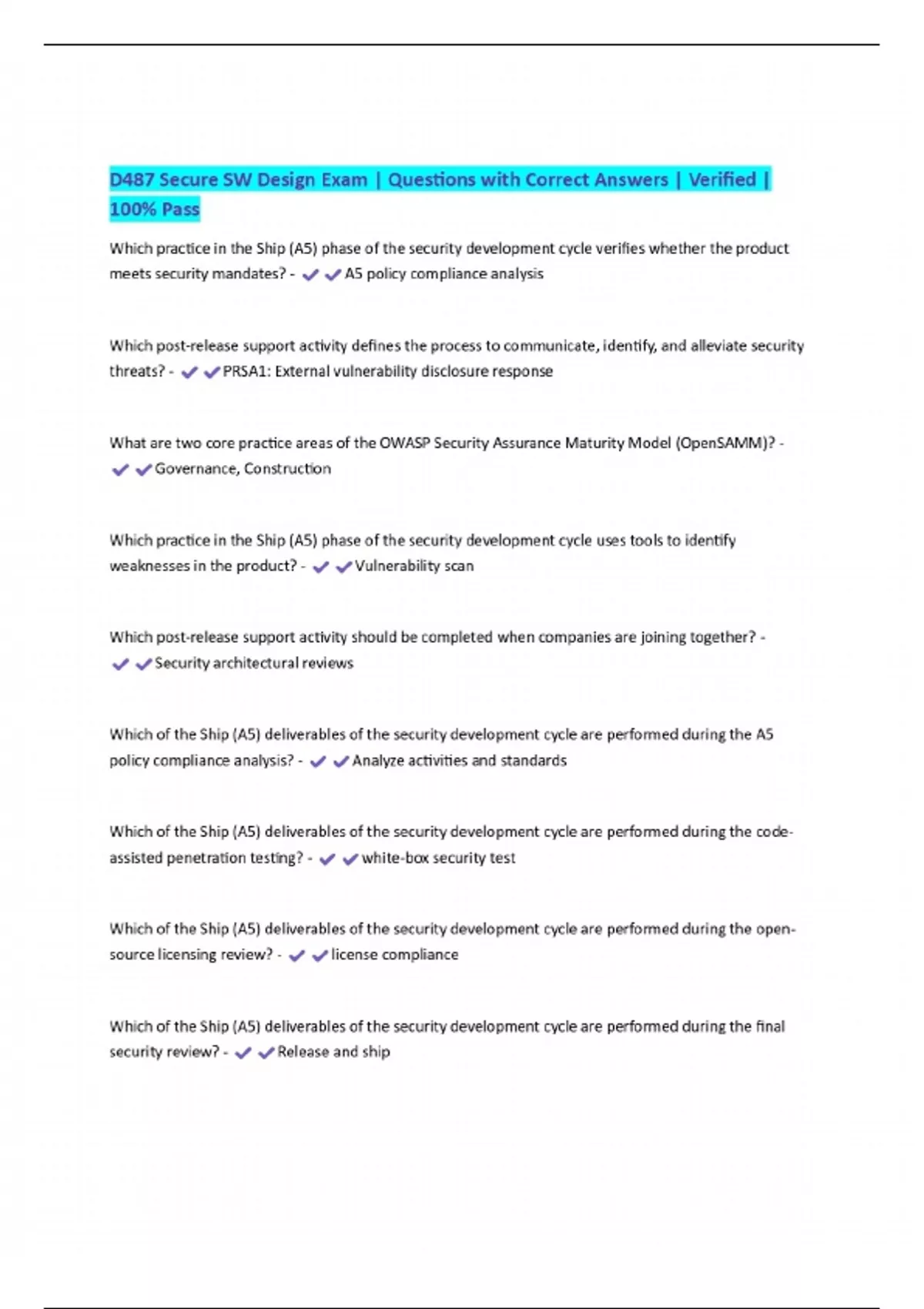 D487 Secure SW Design Exam | Questions with Correct Answers | Verified | 100% Pass
