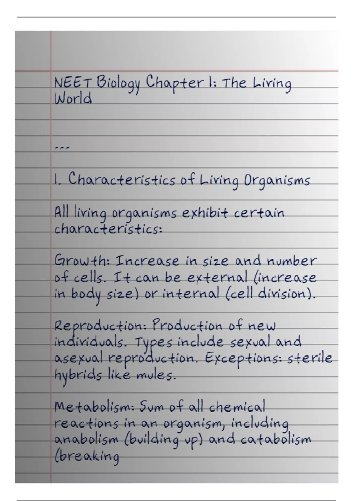 handwritten notes about the first chapter of biology easy to understand