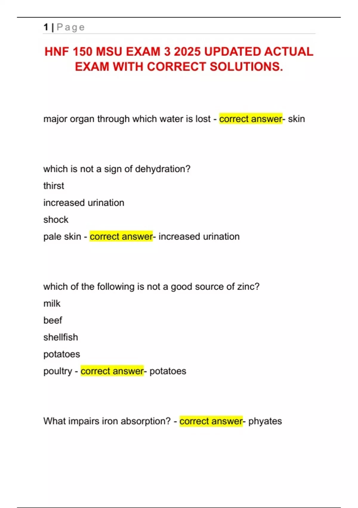 HNF 150 MSU EXAM 3 2025 UPDATED ACTUAL