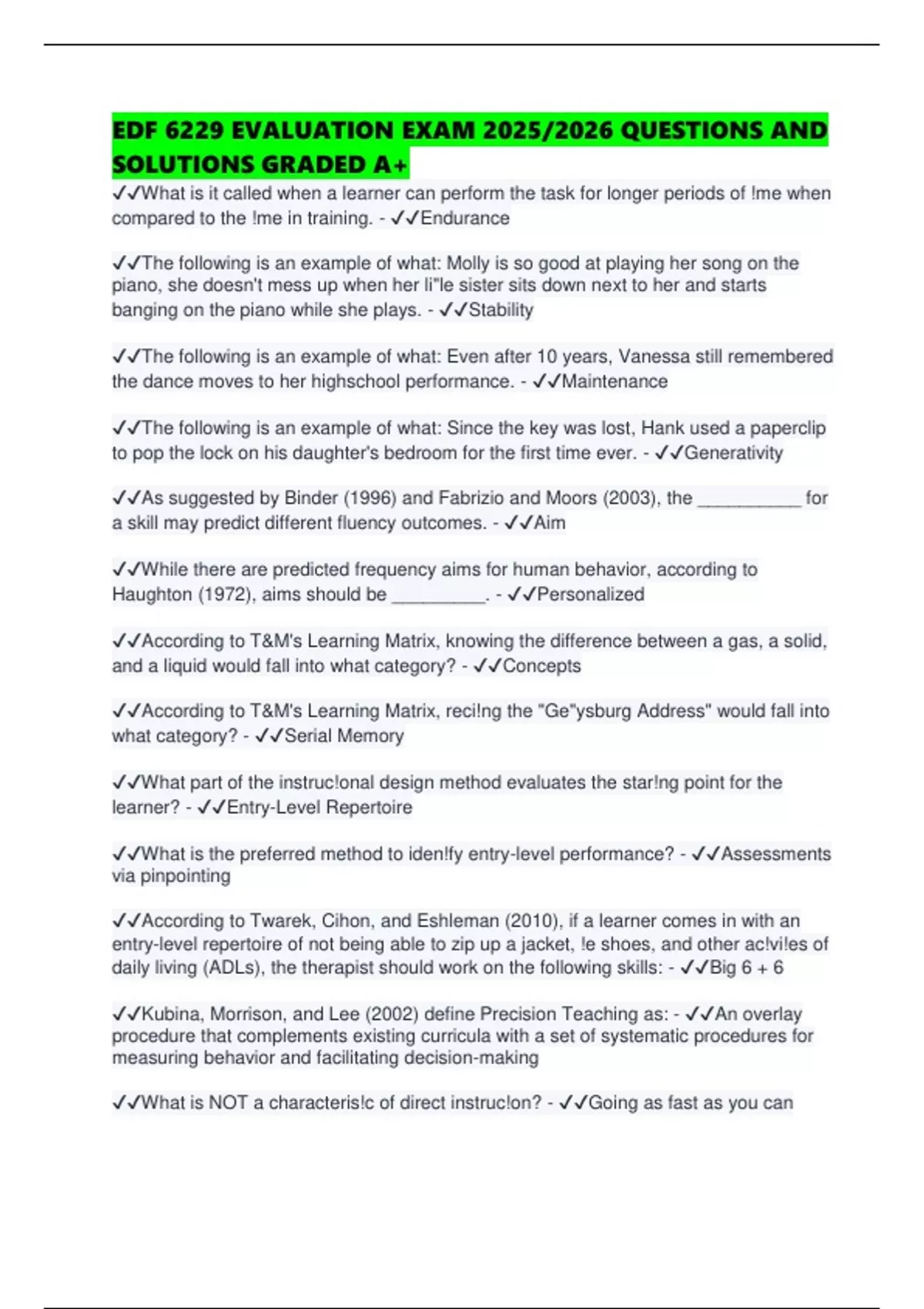 EDF 6229 EVALUATION EXAM 2025/2026 QUESTIONS AND