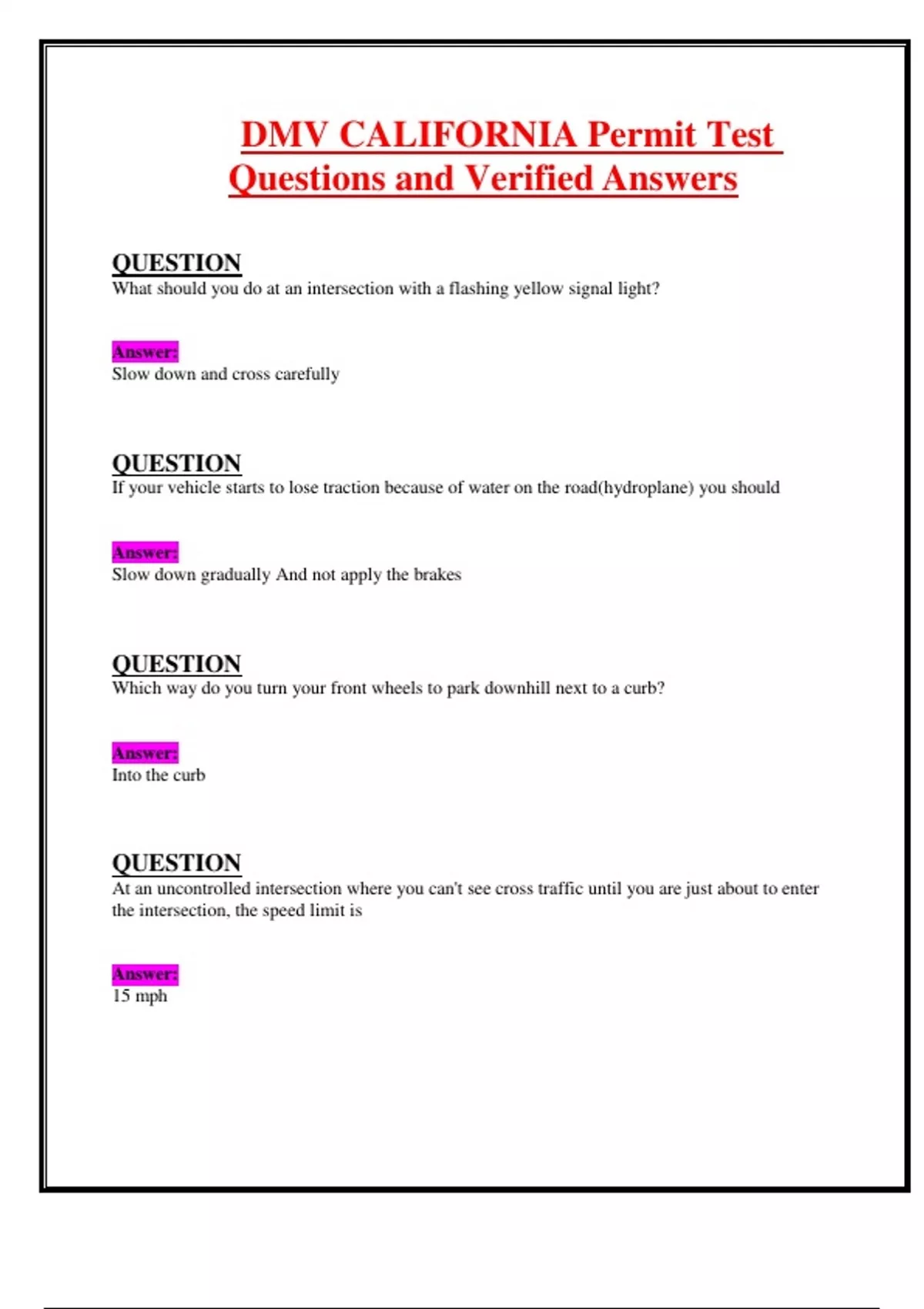 DMV CALIFORNIA Permit Test