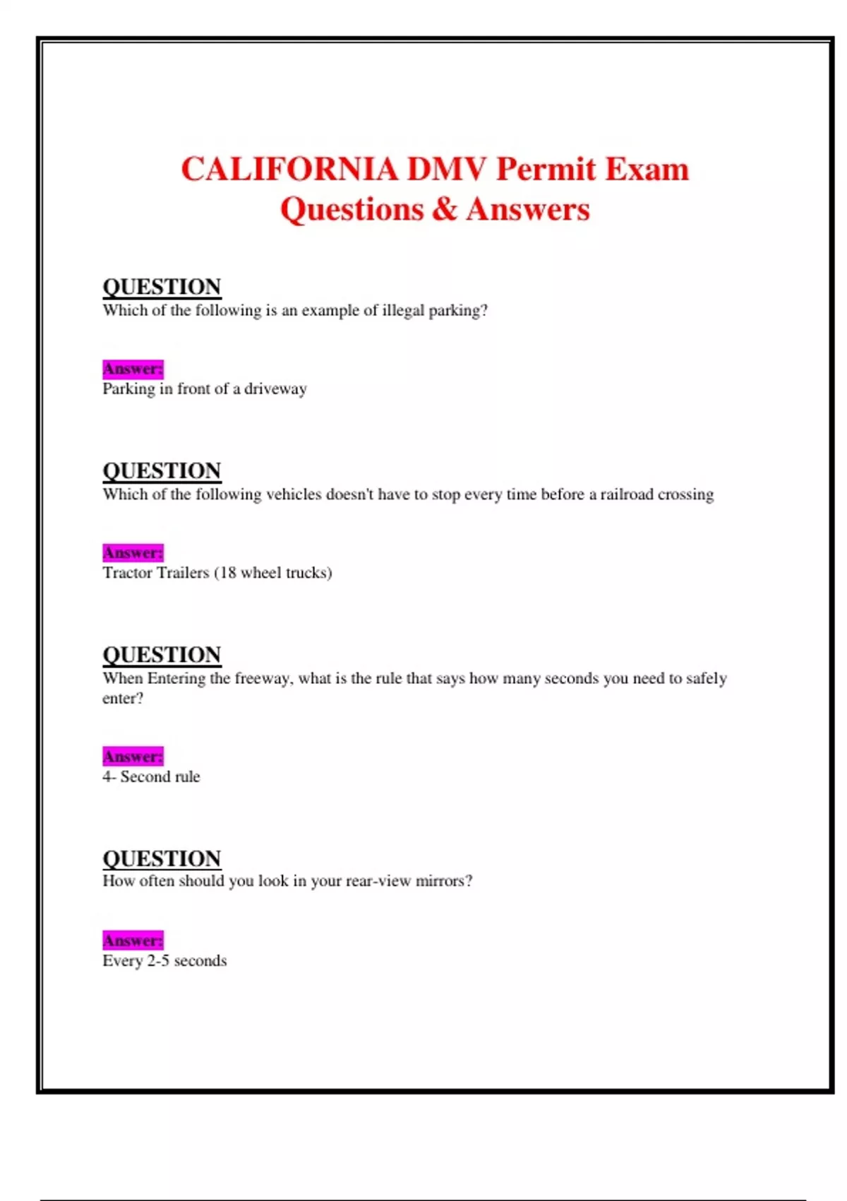CALIFORNIA DMV Permit Exam