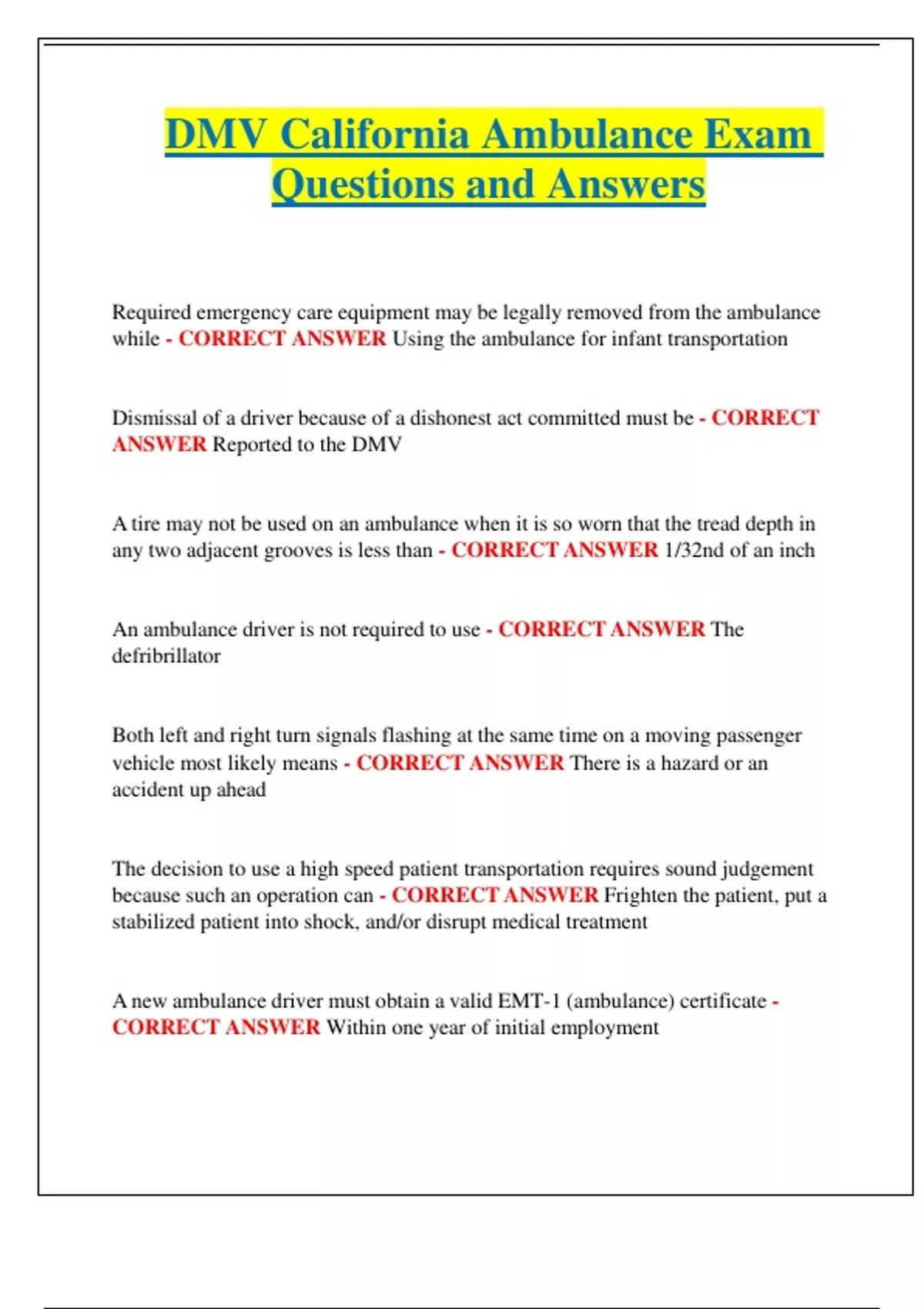 An ambulance driver is not required to use - CORRECT ANSWER The