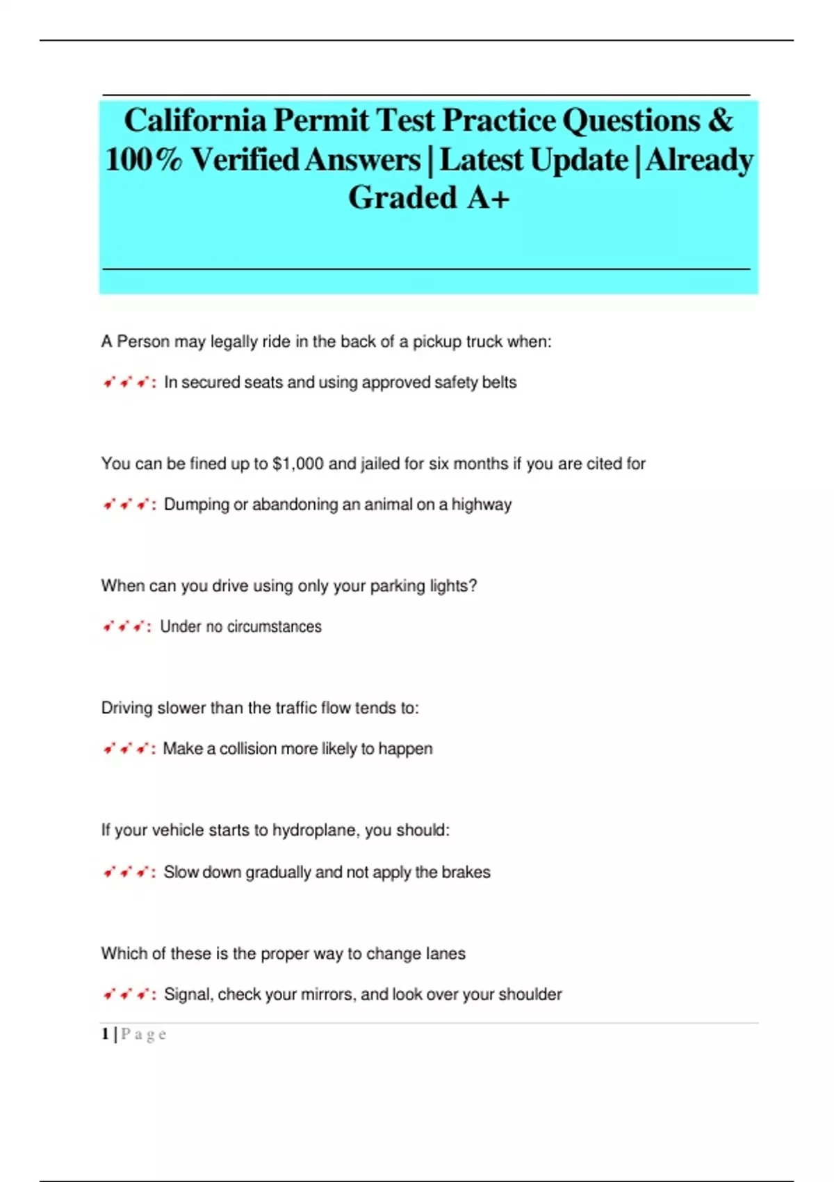 California Permit Test Practice Questions & 100- Verified Answers.